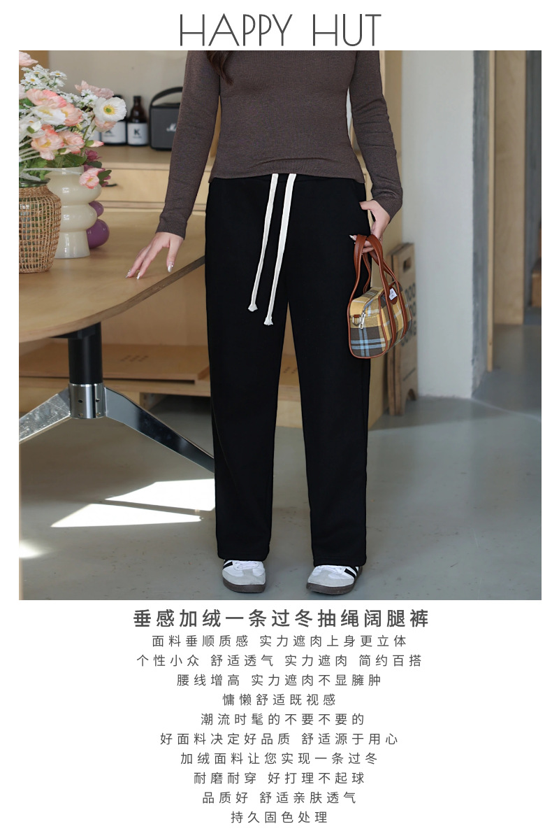 加厚复合黑丝绒高腰阔腿裤润其9416-1大码休闲韩国绒一条温暖过冬