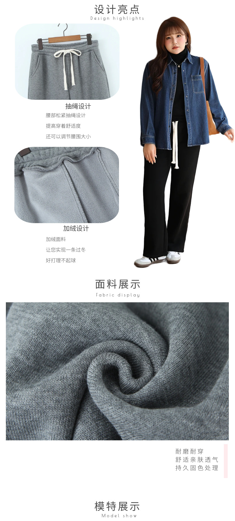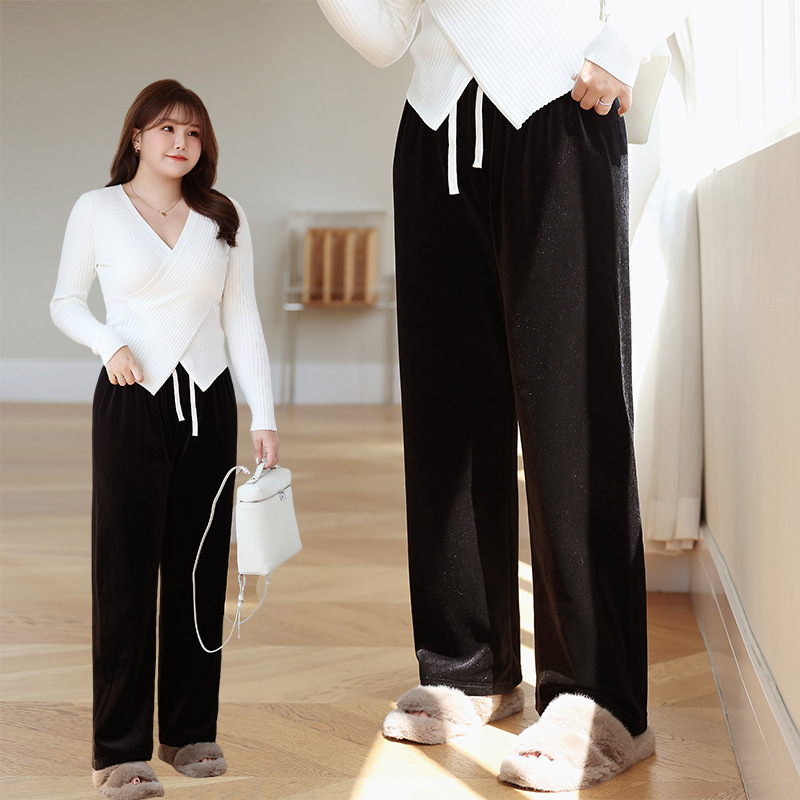 加厚复合奢感丝绒垂坠直筒阔腿裤润其9416大码320g韩国绒环保固色