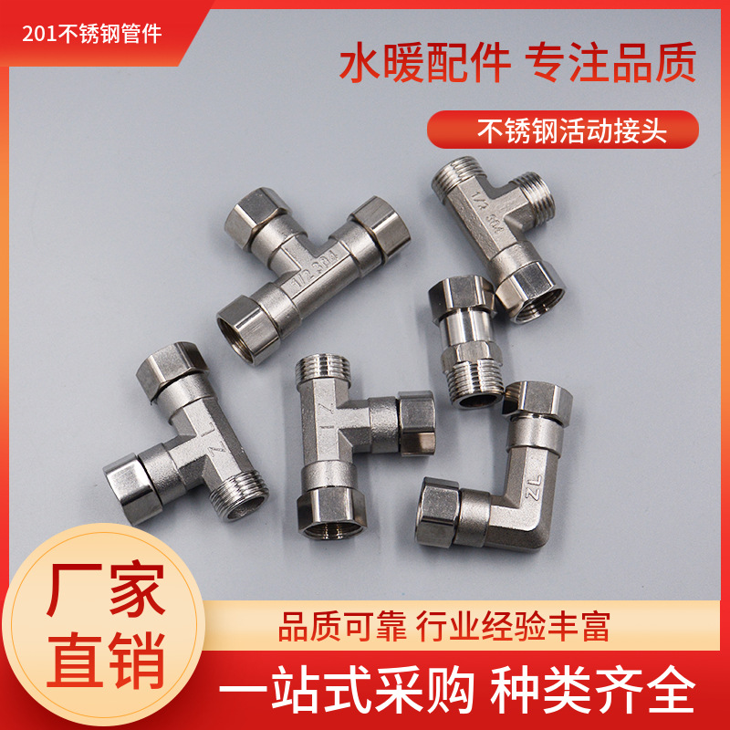 メーカー4分活動継手ステンレス活接内外糸直接エルボ三方厚水暖部品