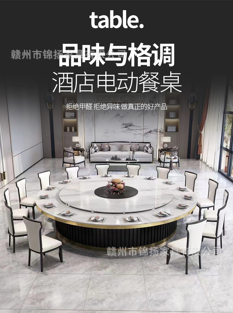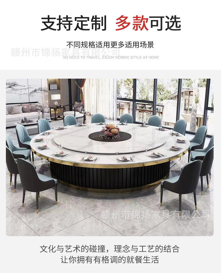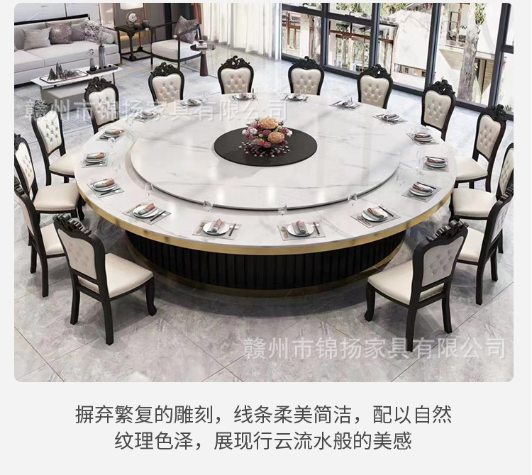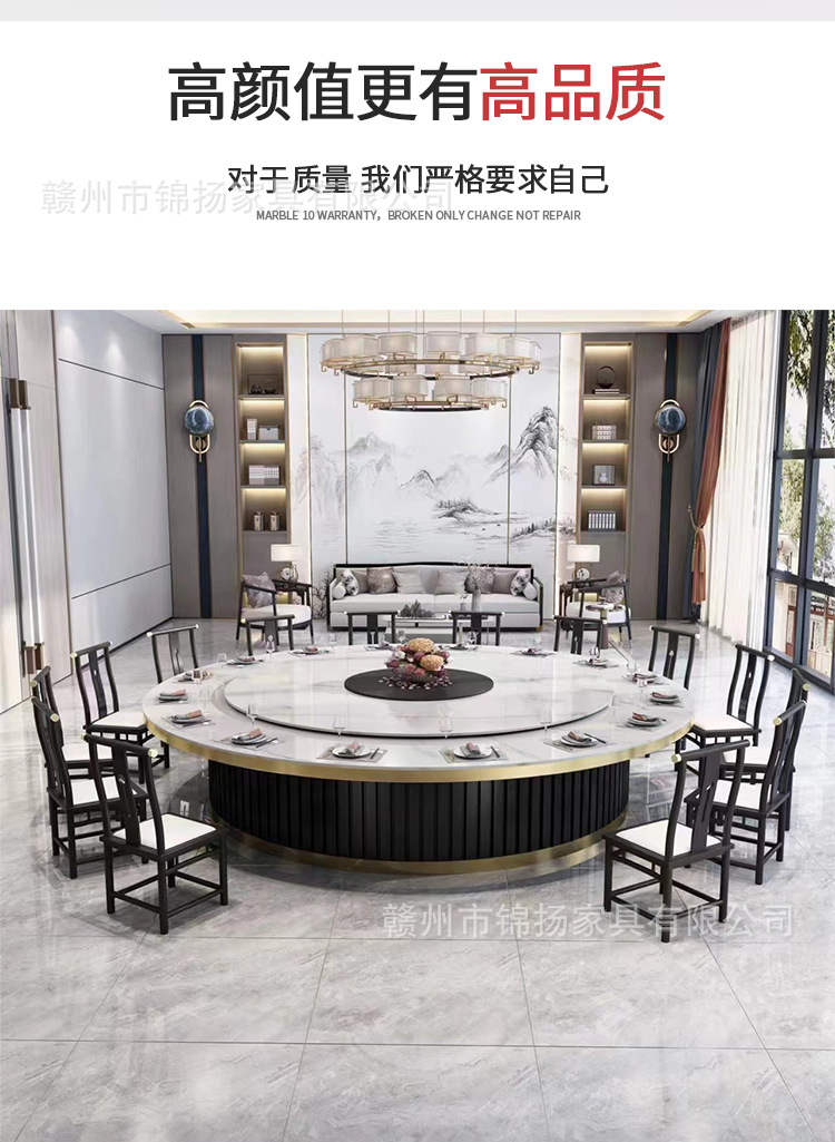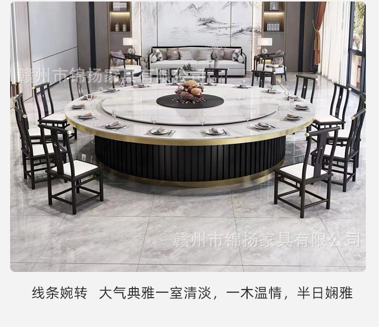 新しい中国風の高級ホテル電気ダイニングテーブル無垢材スレートターンテーブル16人用20人大型ラウンドテーブルレストランホテルボックス