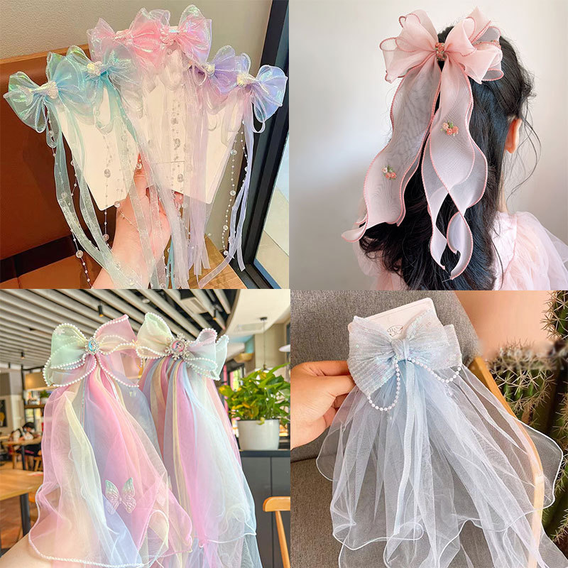 韓国の子供の編みヘアピン刺繍蝶結び髪飾りお姫様ヘアピン超仙女の子ポニーテールヘッド飾りトップクリップ