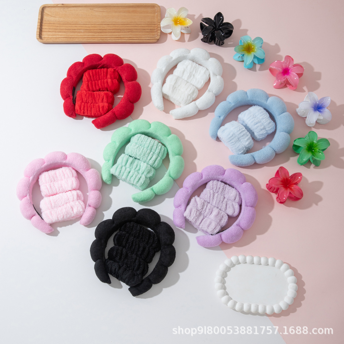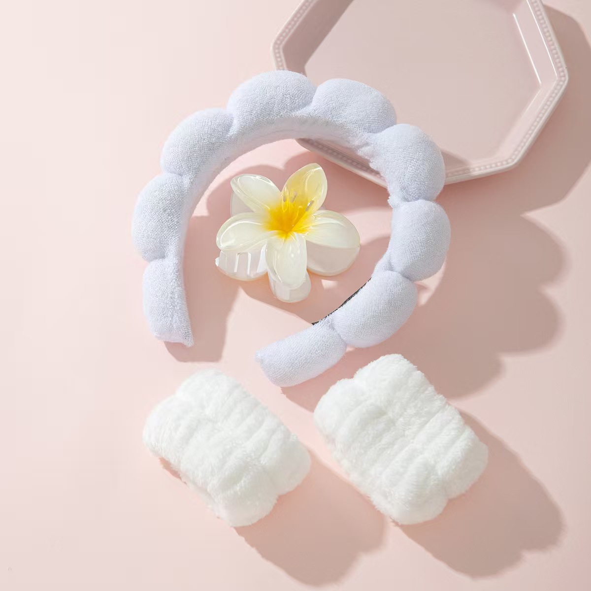 4件套鸡蛋花抓夹洗脸spa防湿手腕带云朵海绵发箍跨境热销2025新款