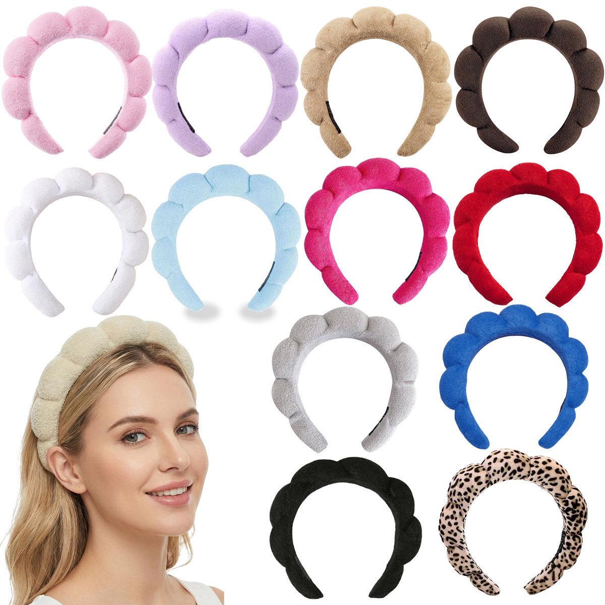 アマゾン越境スポンジ麻花雲輪カチューシャ洗面手首付タオル布化粧つかみセット髪飾りバッチ