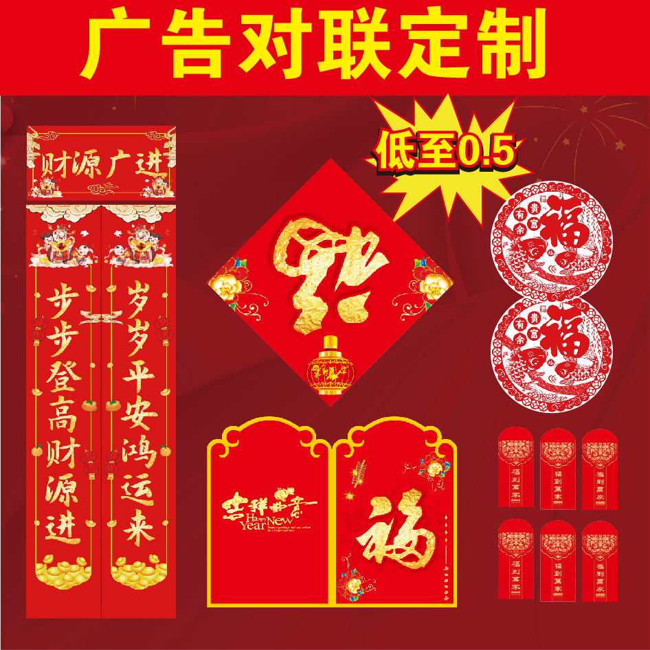 广告对联定制对联贴春联贴春节对联批发马年福字门贴蛇年窗花定制