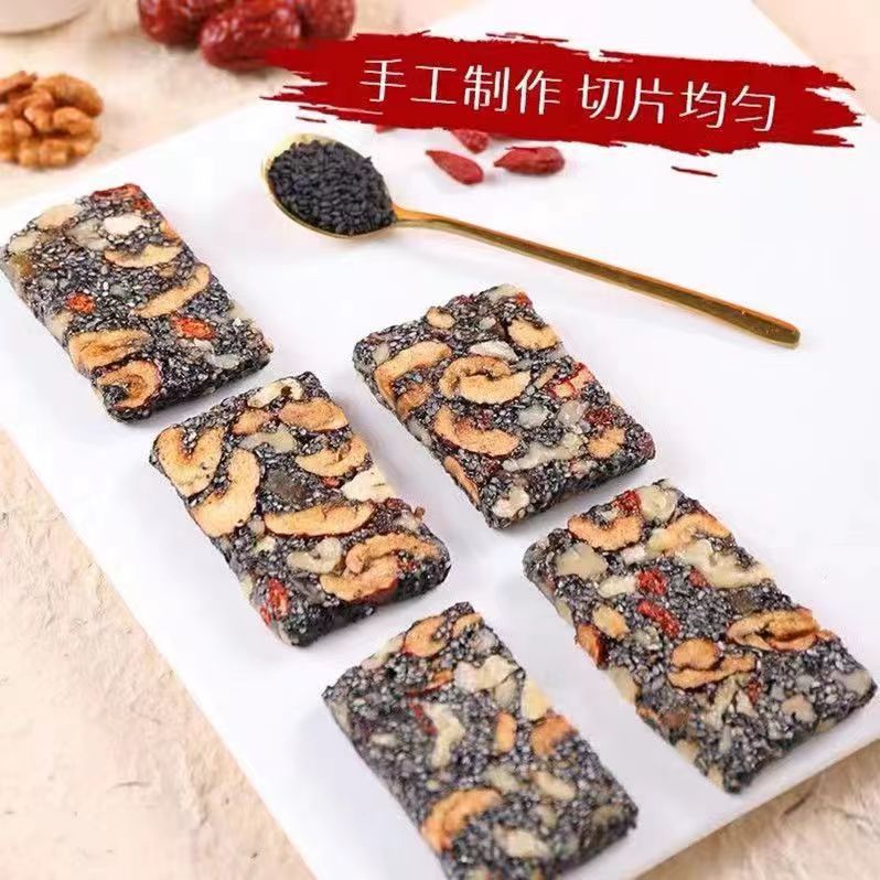 黒胡麻の赤いナツメのクルミのクコの手作りの柔らかい餅の切った餅の健康な間食は独立して栄養を包装して食欲を解消します。