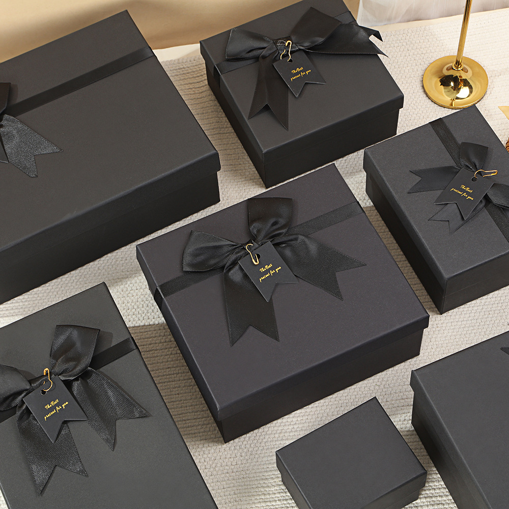 黑色天地盖蝴蝶结礼品包装盒男女生送礼高级大号精美生日礼物空盒