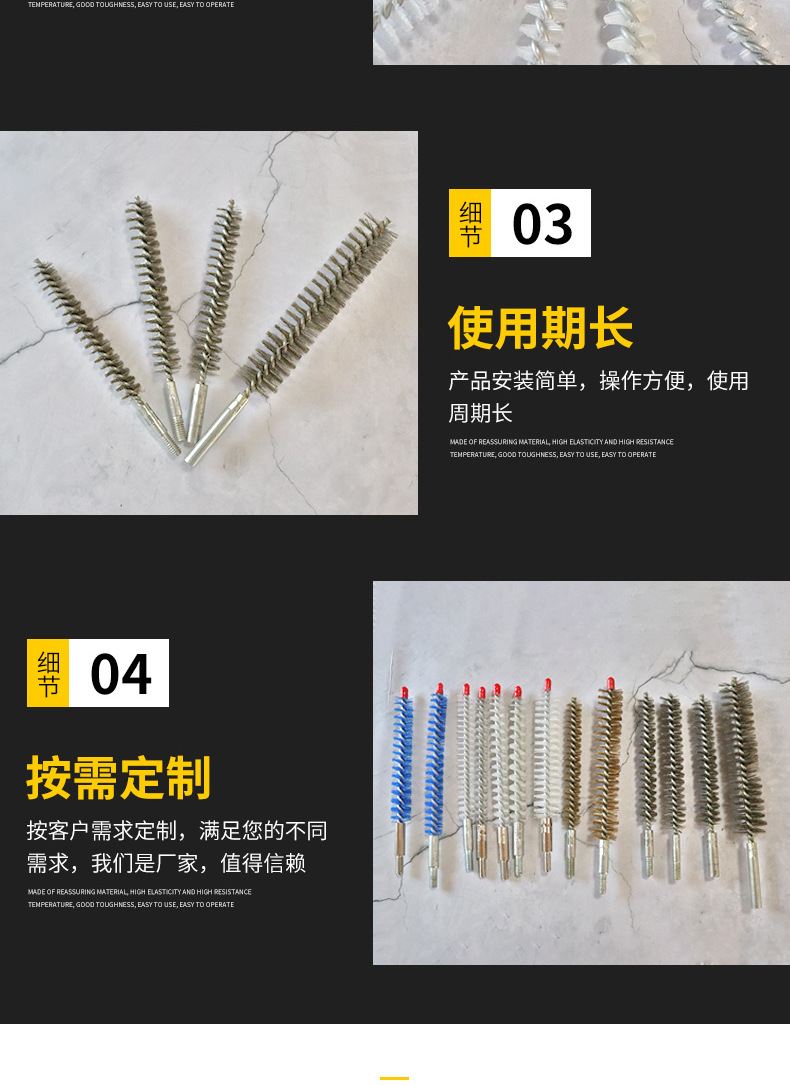 ナイロンワイヤー、ブラシヘッド直径10MM。,ナイロンワイヤー;ブラシヘッド直径12MM,ナイロンワイヤー;ブラシヘッド直径14MM,ナイロンワイヤー;ブラシヘッド直径16MM,ナイロンワイヤー、ブラシヘッド直径18MM。,ナイロンワイヤー;ブラシヘッド直径20MM,ナイロンワイヤー;ブラシヘッド直径22MM,ナイロンワイヤー;ブラシヘッド直径25MM,ナイロンワイヤー;その他の仕様は必要に応じてカスタマイズ可能,ステンレス鋼ワイヤー;ブラシヘッド直径10MM,ステンレス鋼ワイヤー;ブラシヘッド直径12MM,ステンレス鋼ワイヤー;ブラシヘッド直径14MM,ステンレス鋼ワイヤー;ブラシヘッド直径16MM,ステンレス鋼ワイヤー;ブラシヘッド直径18MM,ステンレス鋼ワイヤー;ブラシヘッド直径20MM,ステンレス鋼ワイヤー;ブラシヘッド直径22MM,ステンレス鋼ワイヤー;ブラシヘッド直径25MM,ステンレス鋼線;その他の仕様は必要に応じてカスタマイズされます,純銅線、ブラシヘッド直径10MM。,純銅線; ブラシヘッド直径 12MM,純銅線; ブラシヘッド直径 14MM,純銅線、ブラシヘッド直径16MM。,純銅線; ブラシヘッド直径 18MM,純銅線、ブラシヘッド直径20MM。,純銅線; ブラシヘッド直径 22MM,純銅線; ブラシヘッド直径 25MM,純銅線、その他の仕様は必要に応じてカスタマイズ可能,1m 長くて柔軟な延長ポール。その他の仕様は必要に応じてカスタマイズされます