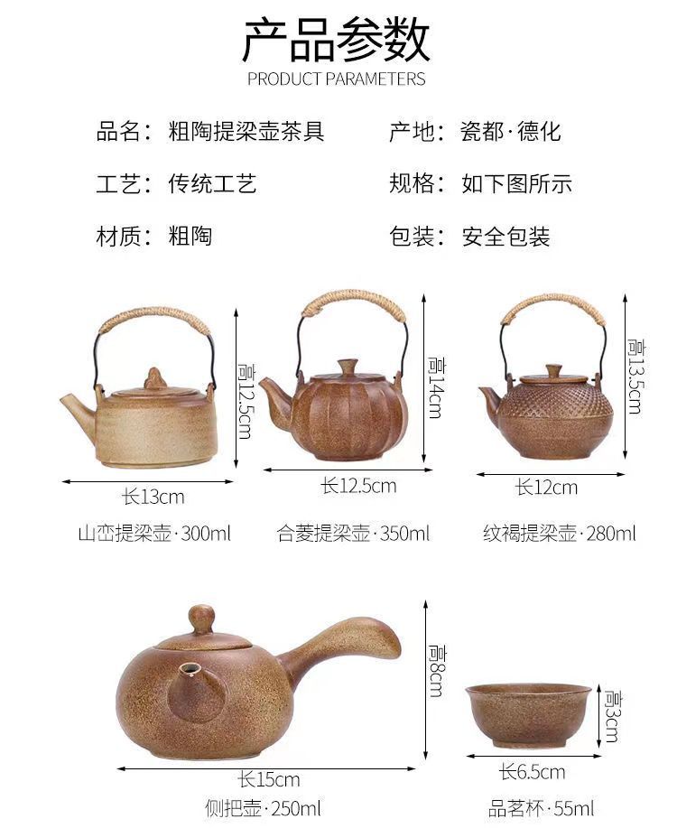 ティーポットティーポット陶磁器茶道具粗陶家庭用手作り単壺中国式シンプル陶磁器ティーポット提梁壺