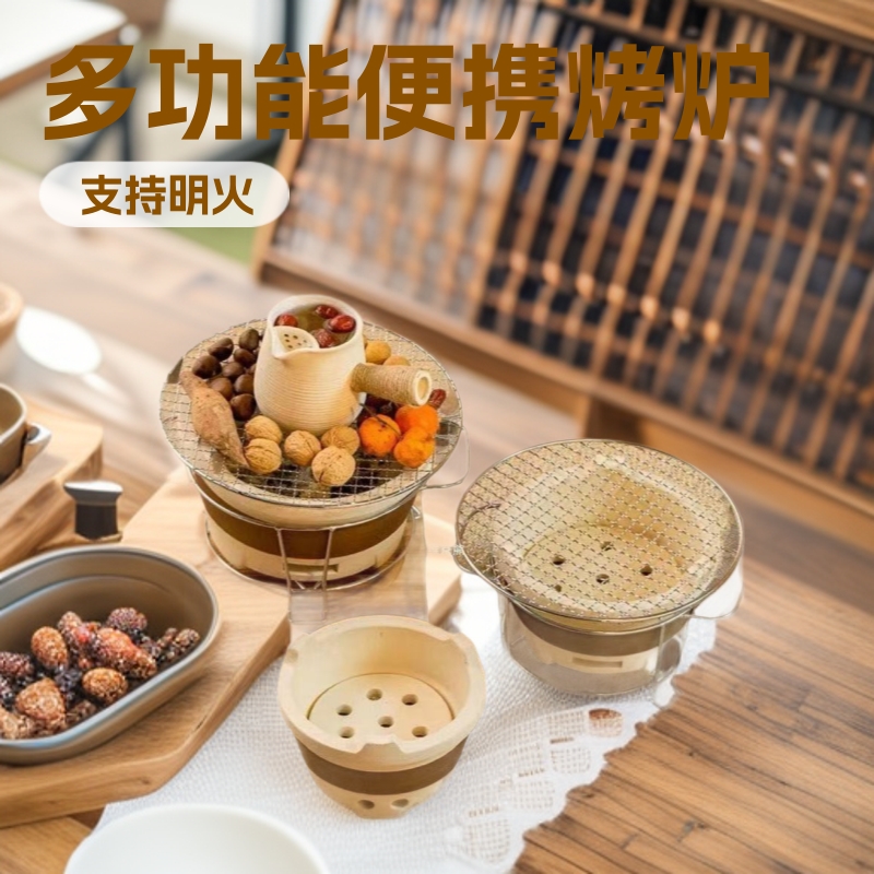 柴焼囲炉煮茶レトロな火炭焼き陶磁器煮ティーポット温茶炉ネット赤屋外側にポット茶器を置く