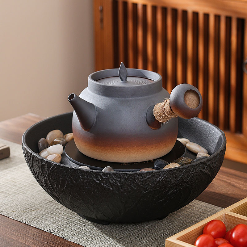 ティーポット粗陶茶器高級温茶炉ろうそく柴焼煮茶炉花茶小温茶器柴焼囲炉煮茶