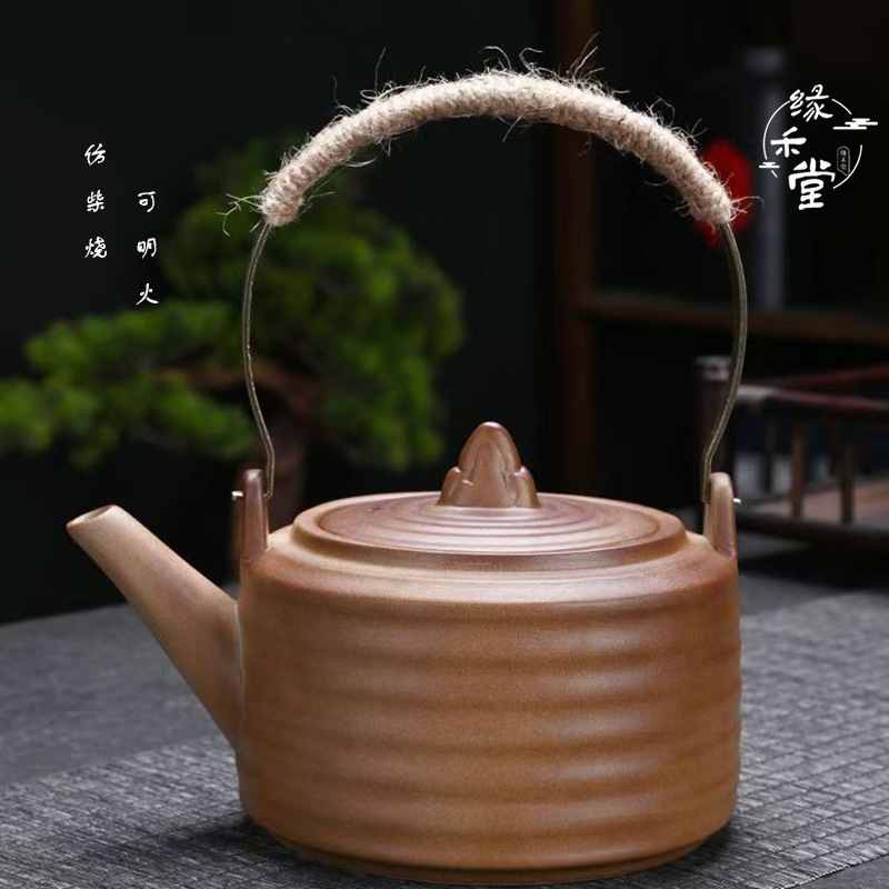 粗陶煮茶壶手工复古温茶器家用养生提梁壶单个陶瓷明火电陶炉水壶