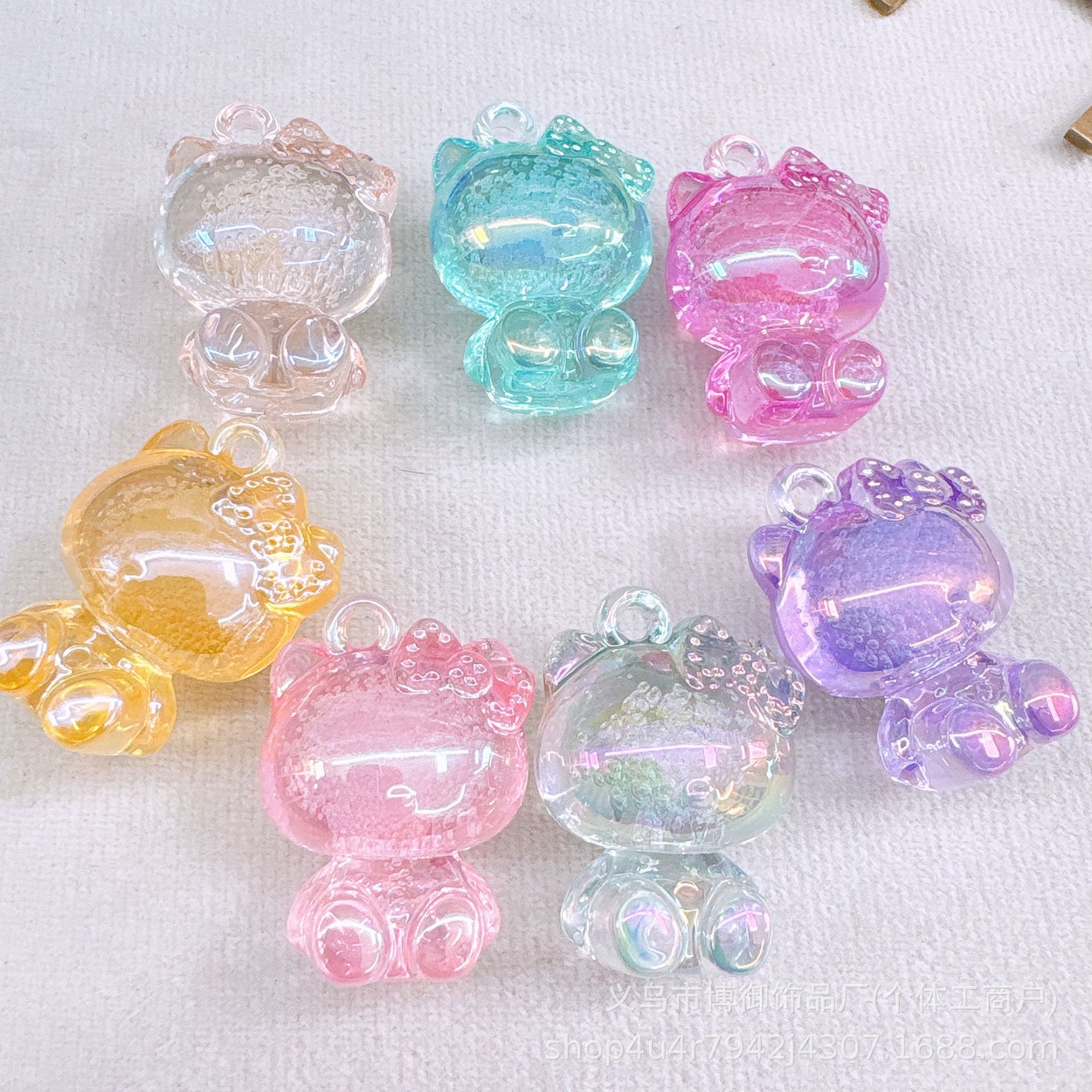 吊孔透明卡通亚克力UV镀彩内置气泡Kt猫挂件diy钥匙包链饰品 配件