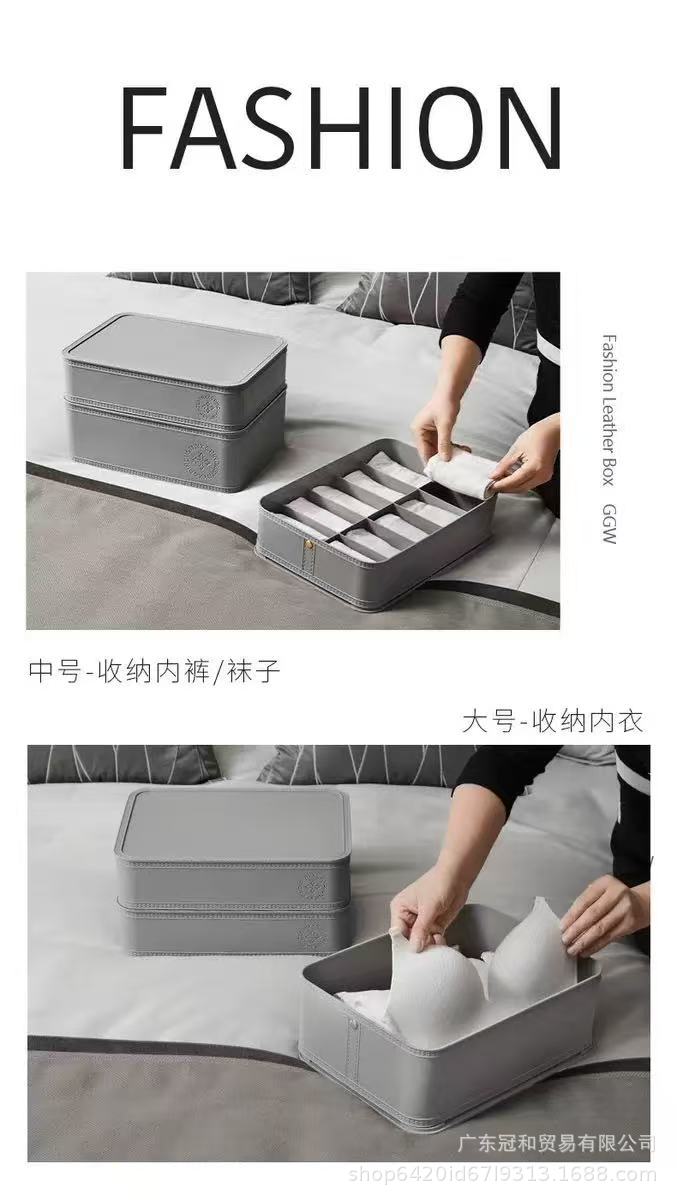 内衣收纳盒轻奢皮质抽屉分格盒内裤袜子宿舍储物盒卧室衣柜整理盒