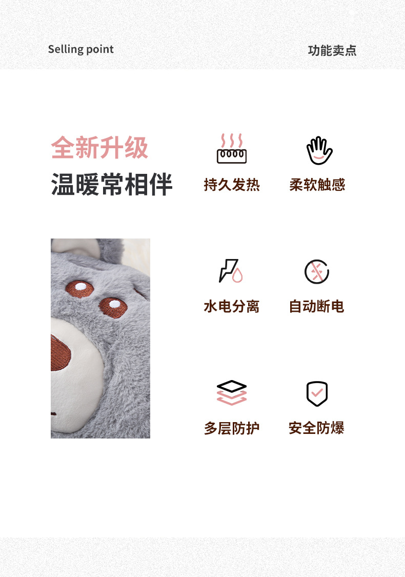 国標はすでに注水されていて、ぬいぐるみ袋を取り外してかわいい動物防爆充電式電気湯たんぽの湯たんぽ卸売りをしている
