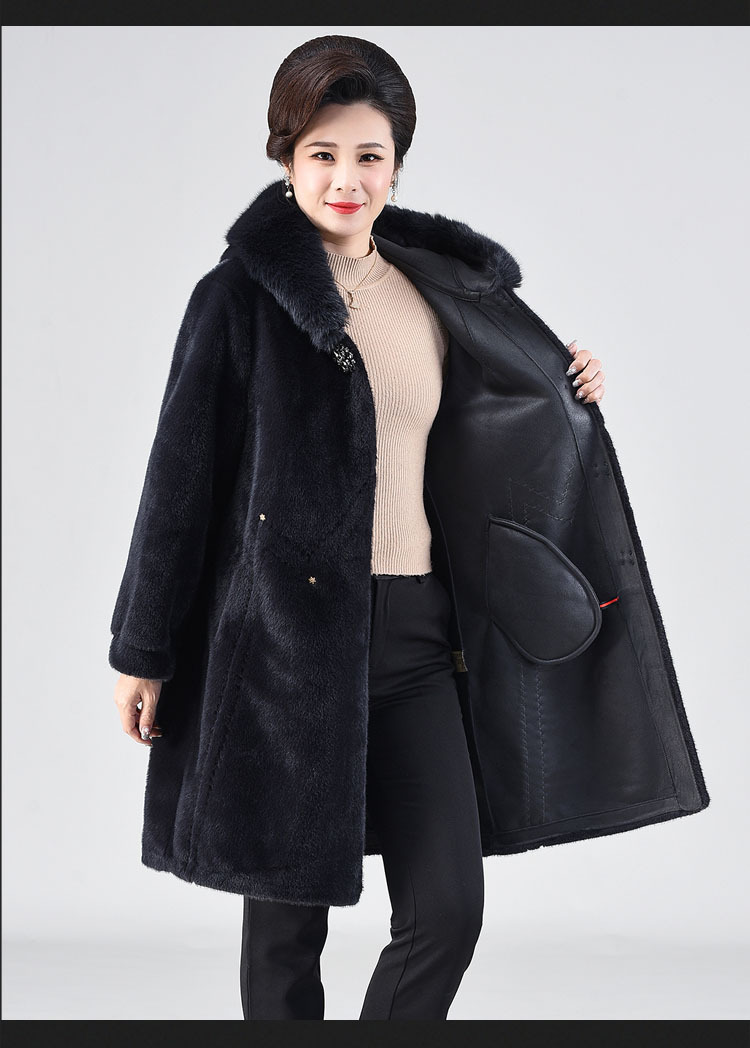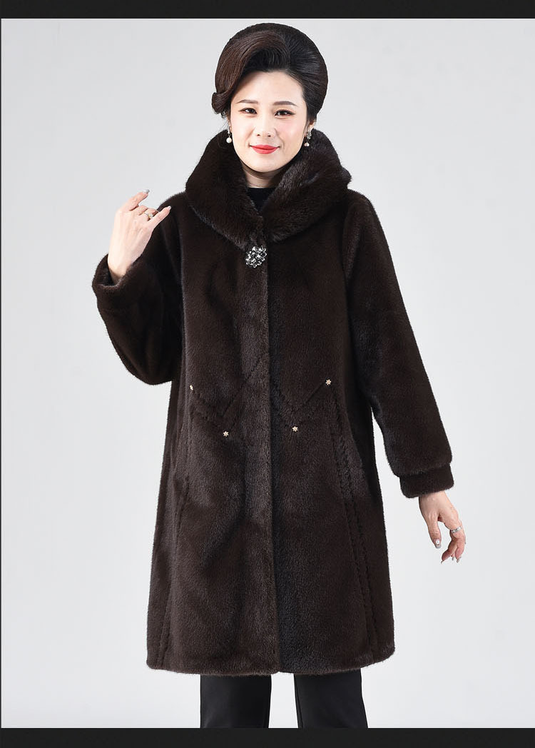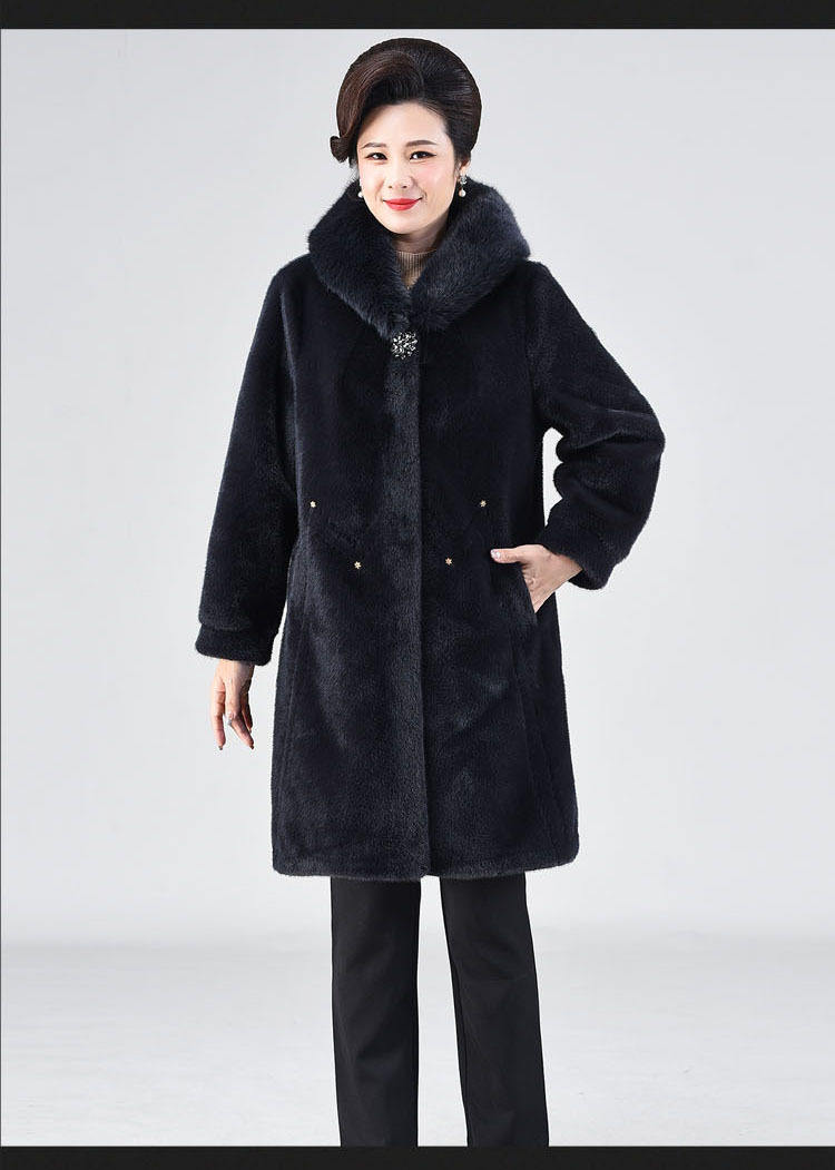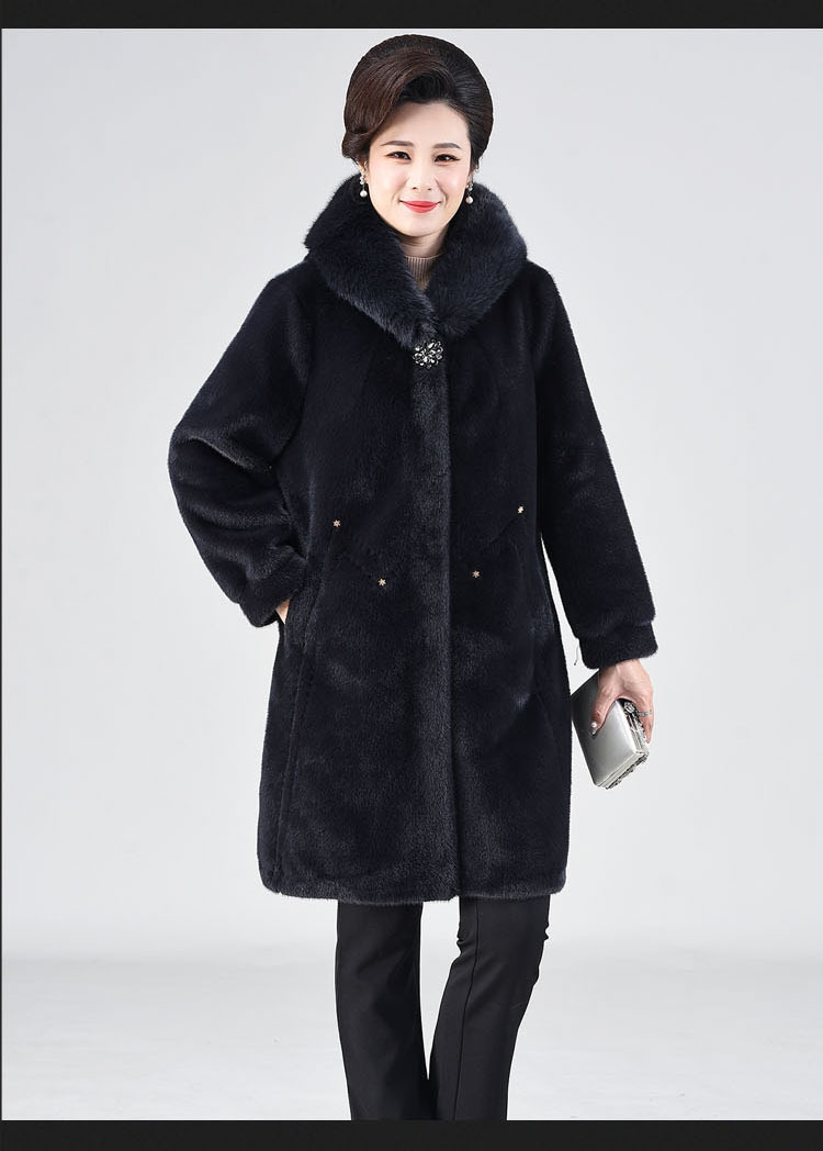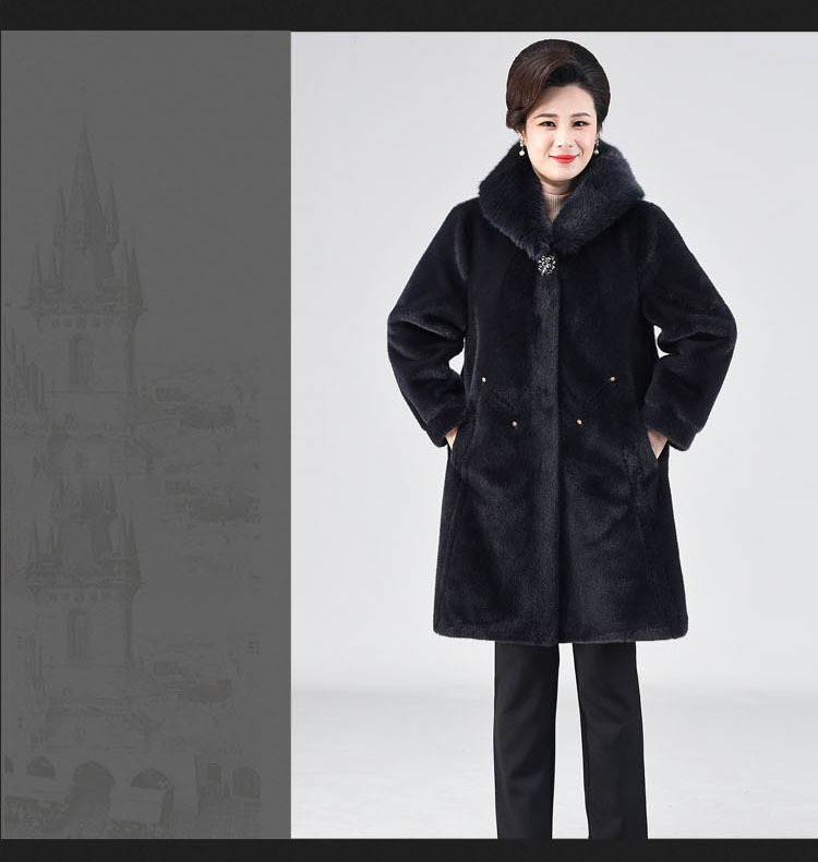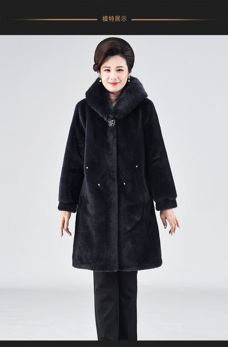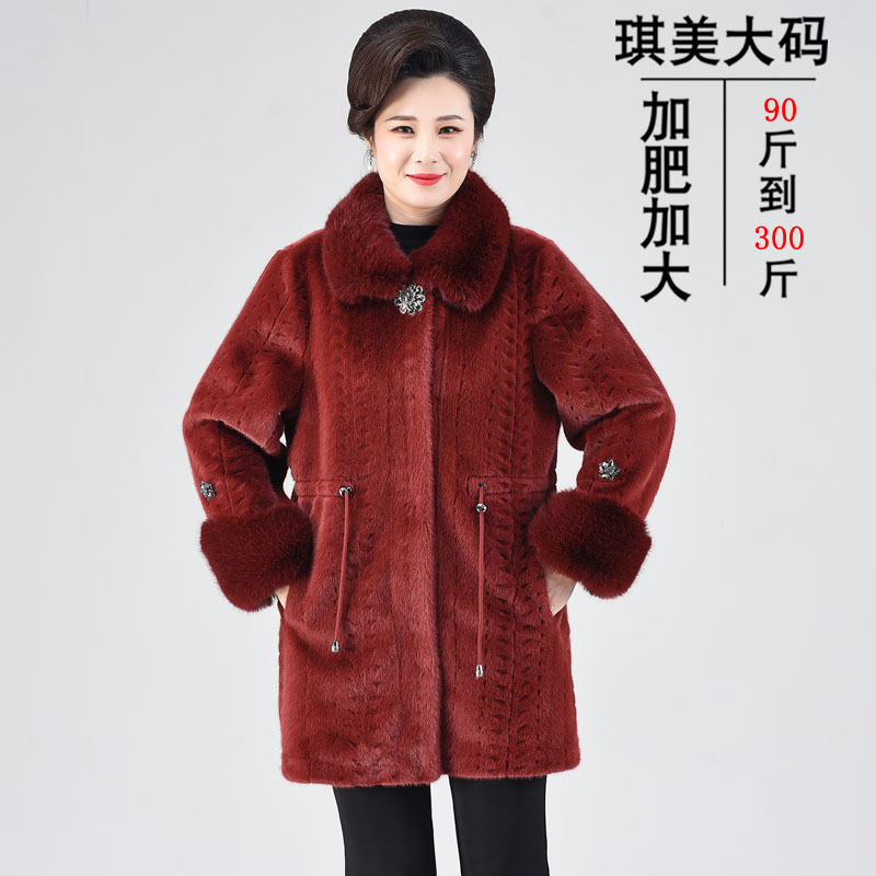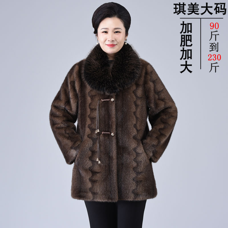 太ったお母さんの冬服の洋風の毛皮の上着の秋冬の毛皮の一体の中高年の女性の気高いゆったりしている大きいサイズの230斤