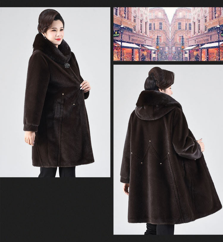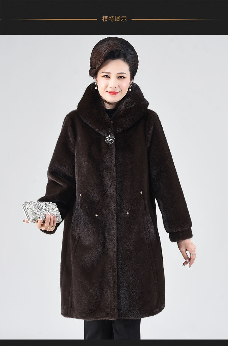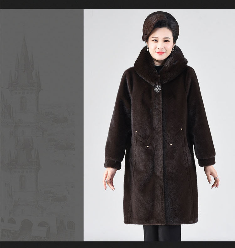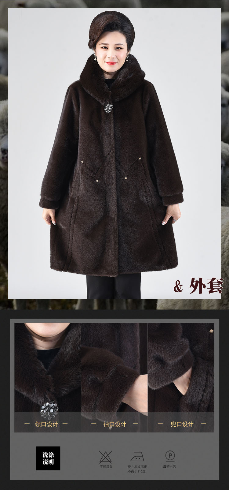 200斤の新型の中長の毛皮の上着の中年の婦人服の欧ミンクの毛のお母さんはミンクの皮のコートを着て冬の服を厚くします。