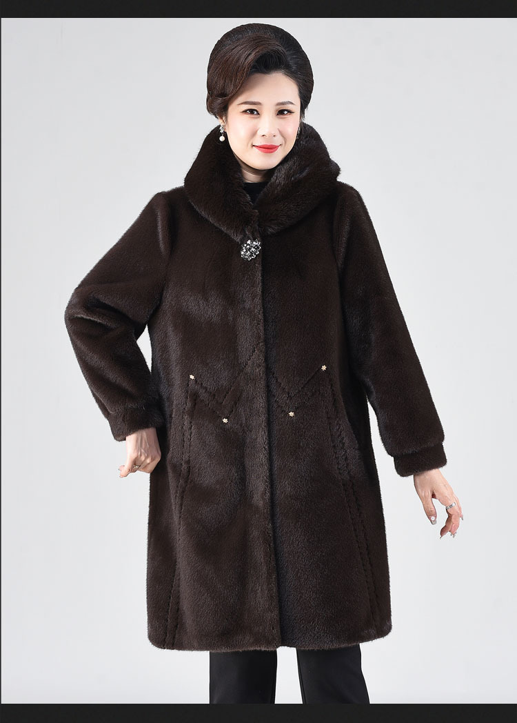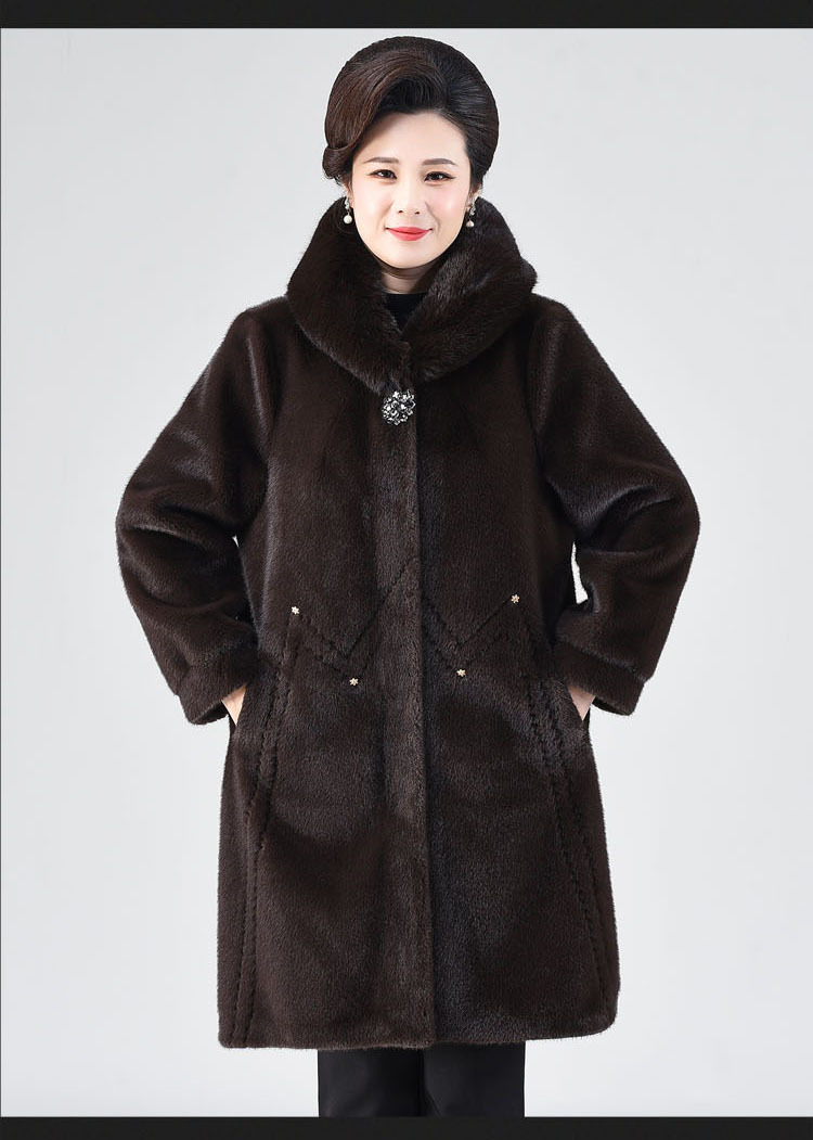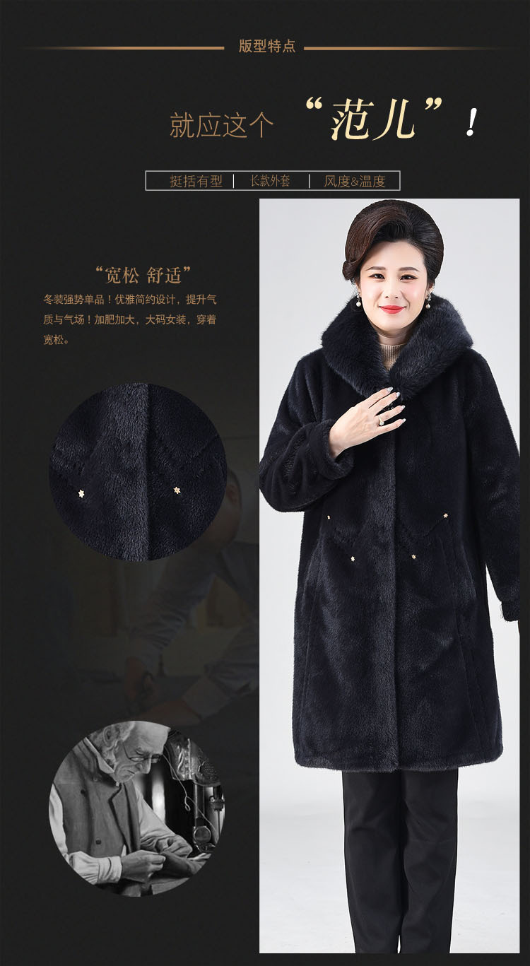 230斤中老年女装貂绒外套 气质妈妈宽松保暖仿皮草大衣奶奶装上衣