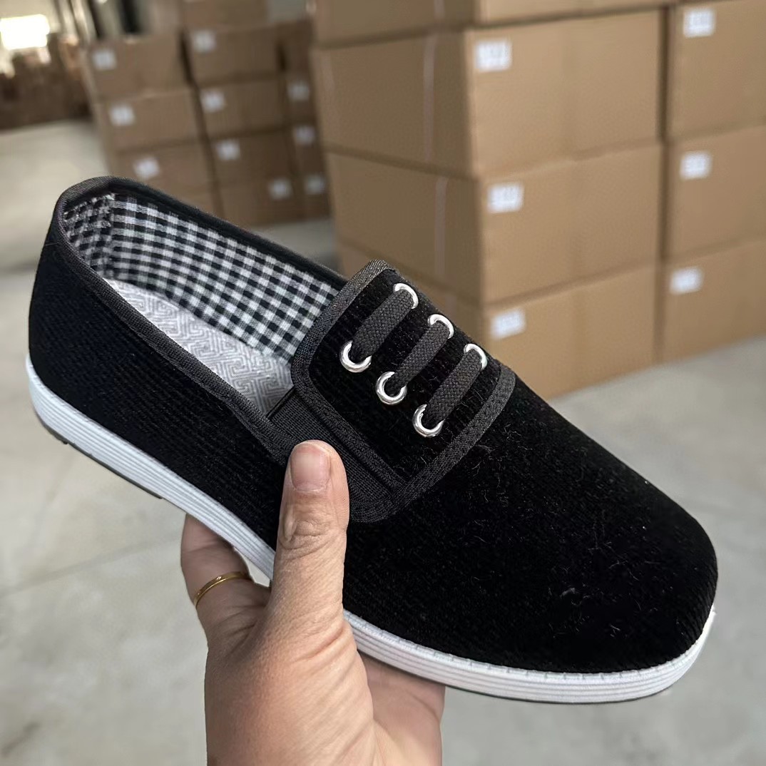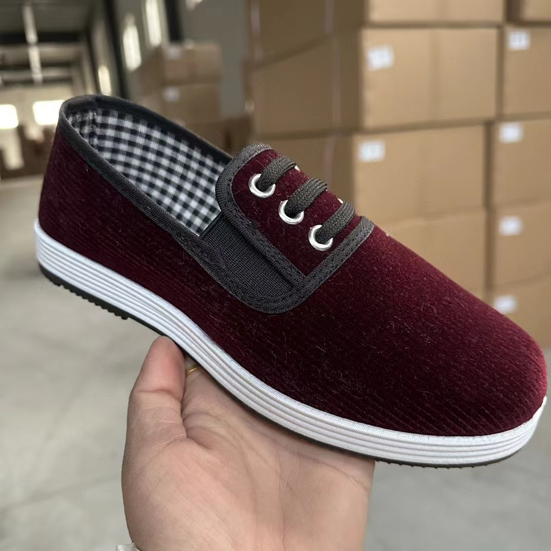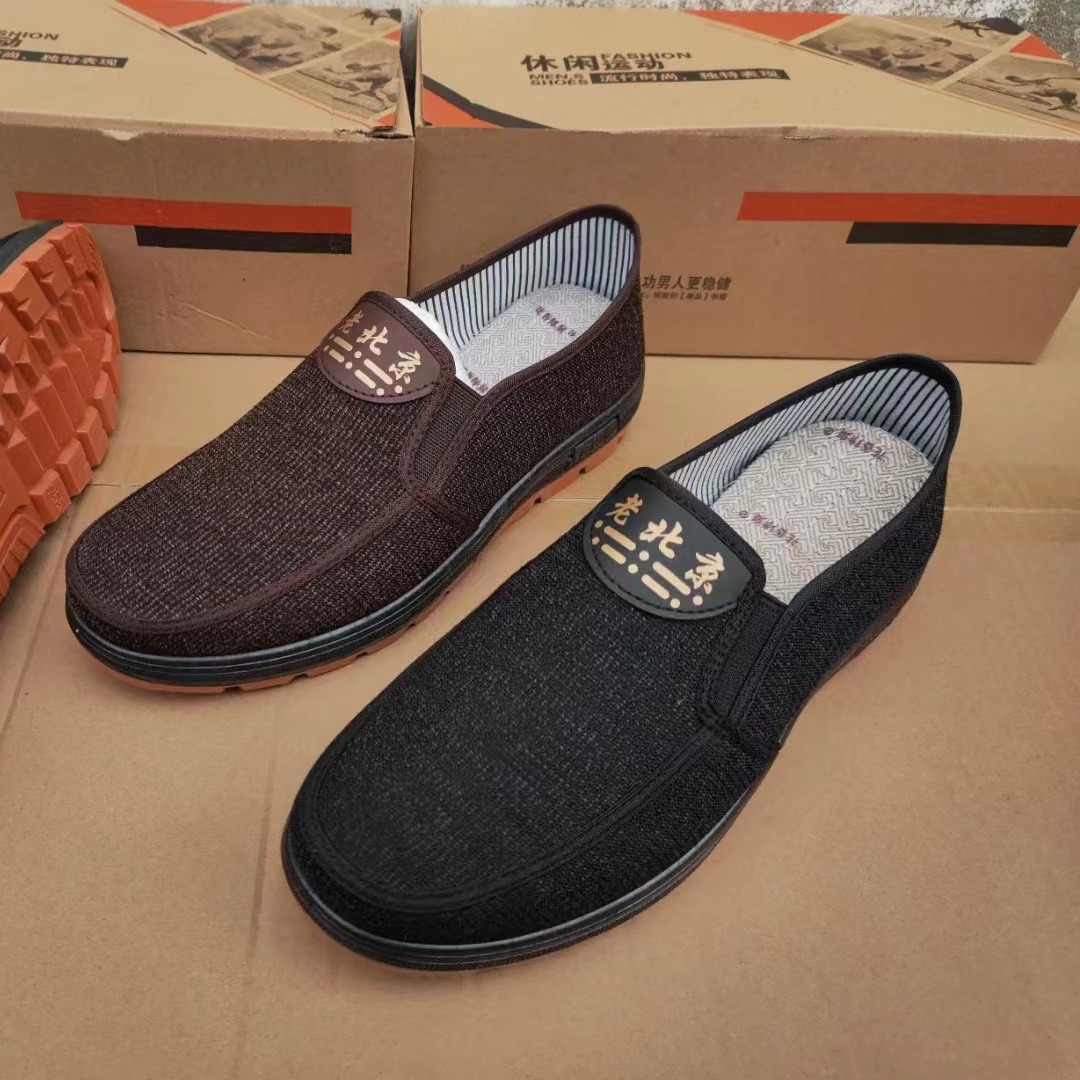 春と秋の新型男性の布靴は牛の筋肉の底を厚くして、古い北京の布靴の通気性の露店の中で高齢のお父さんの靴を編みます。
