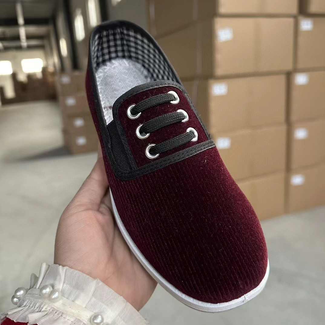 冬の新作老北京綿靴、男女兼用、ベルベット素材、裏起毛、スリッポンタイプ、暖かいお母さん用綿靴、女性用