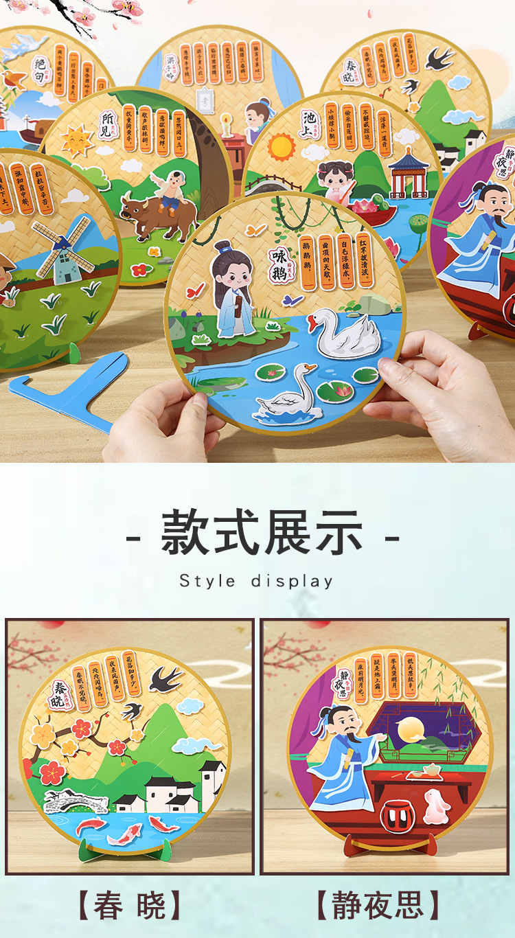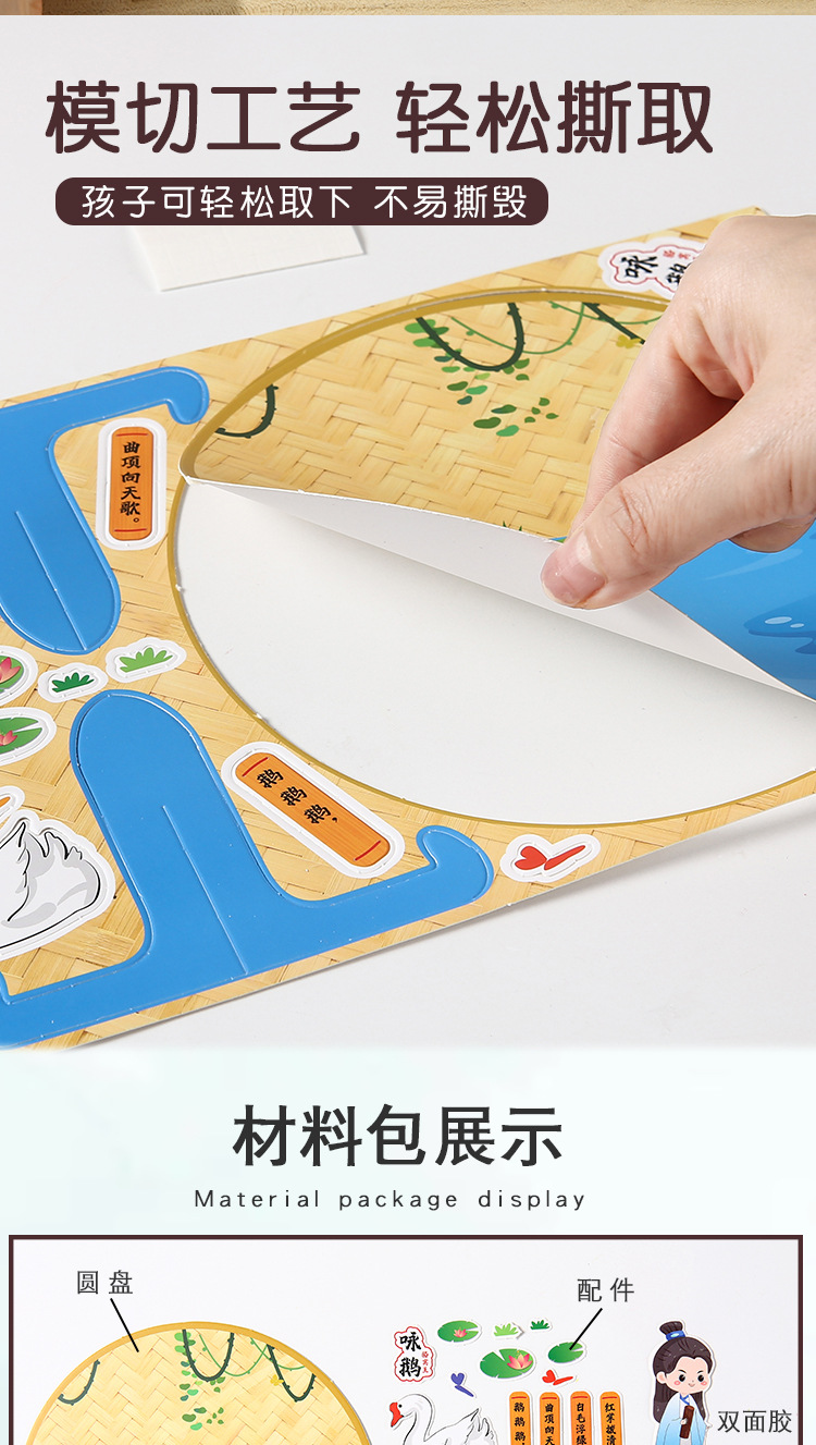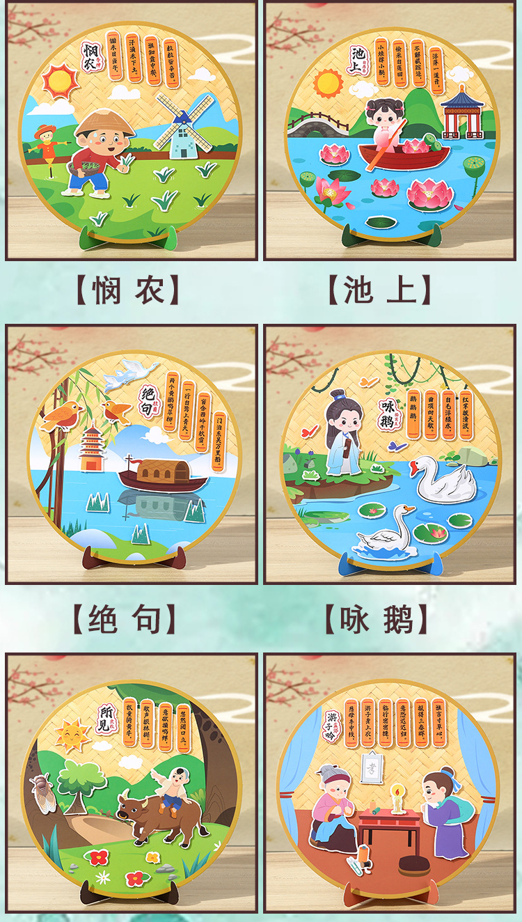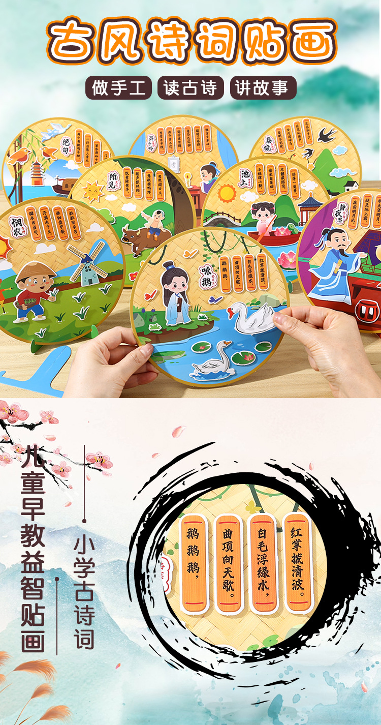 古詩の詩は漫画の子供のdiyの手作りの材料を貼ってアイデアの幼稚園を包みます。