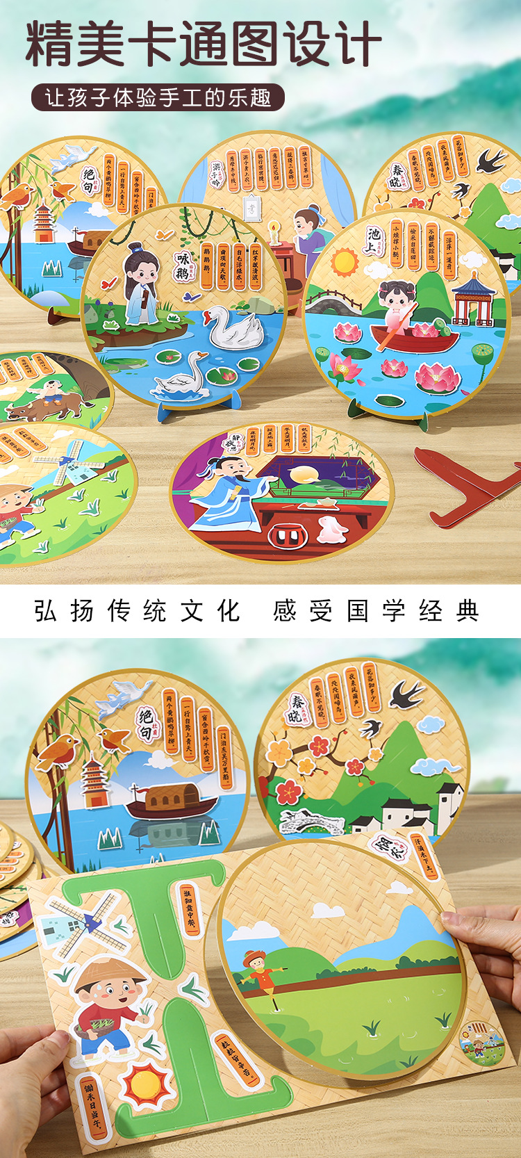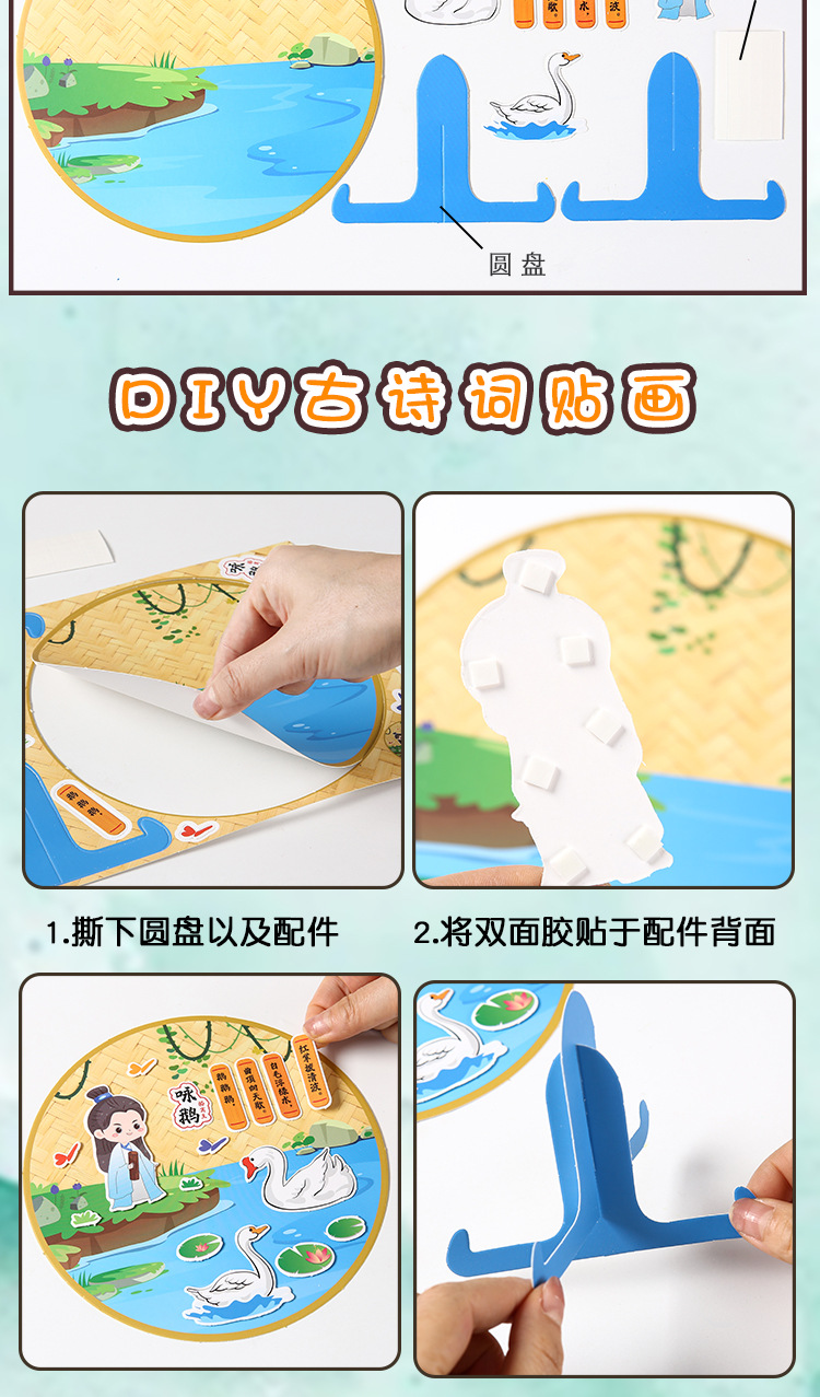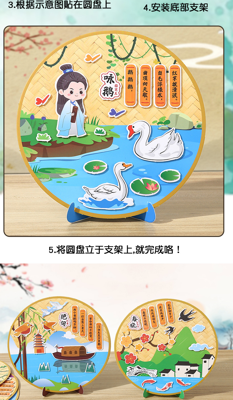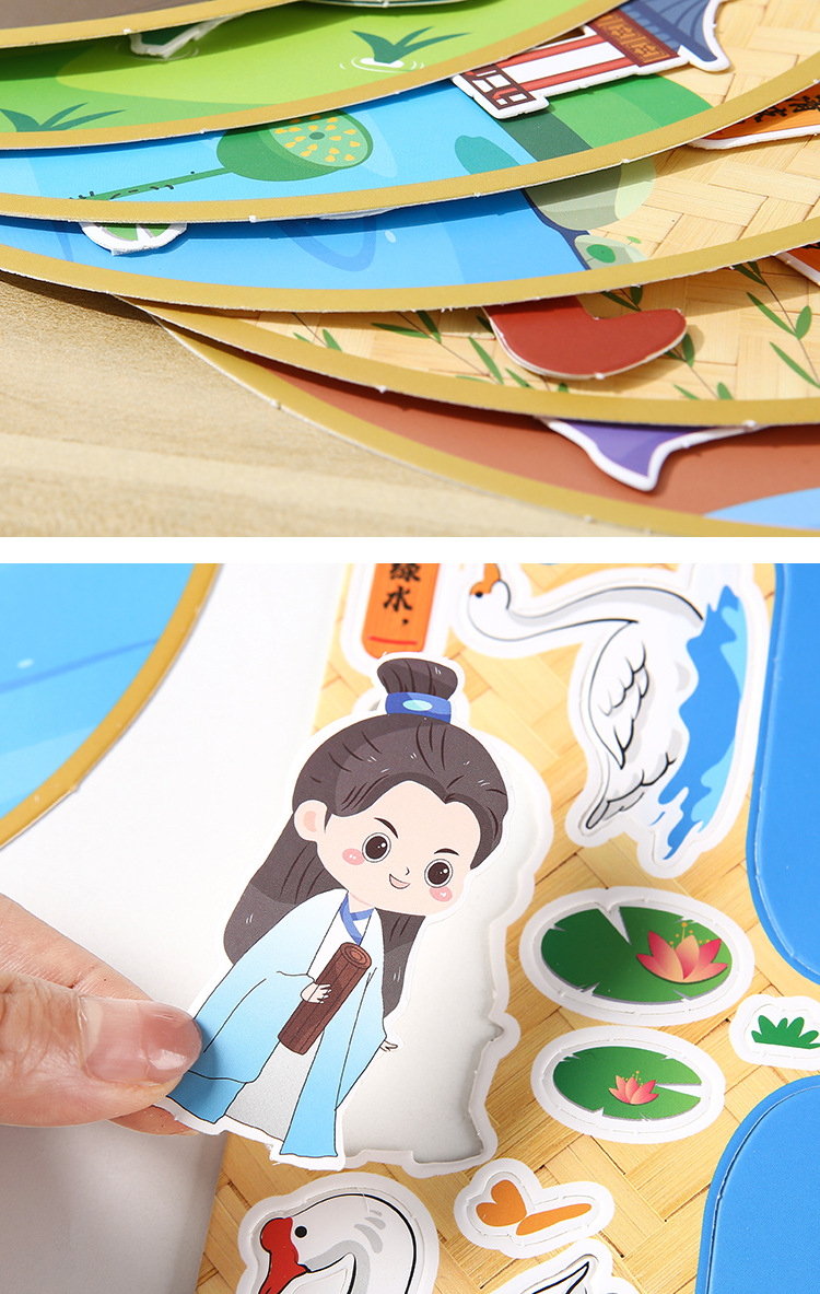 古詩の詩は漫画の子供のdiyの手作りの材料を貼ってアイデアの幼稚園を包みます。
