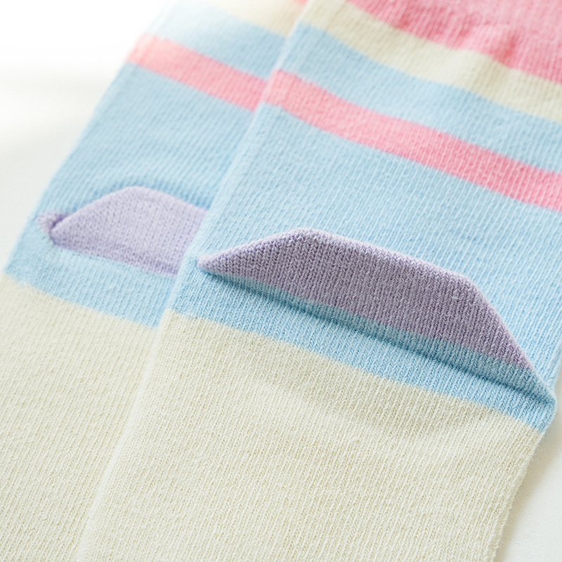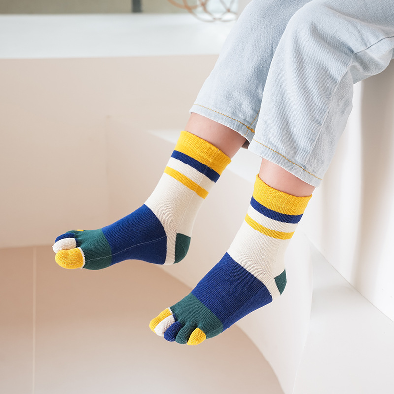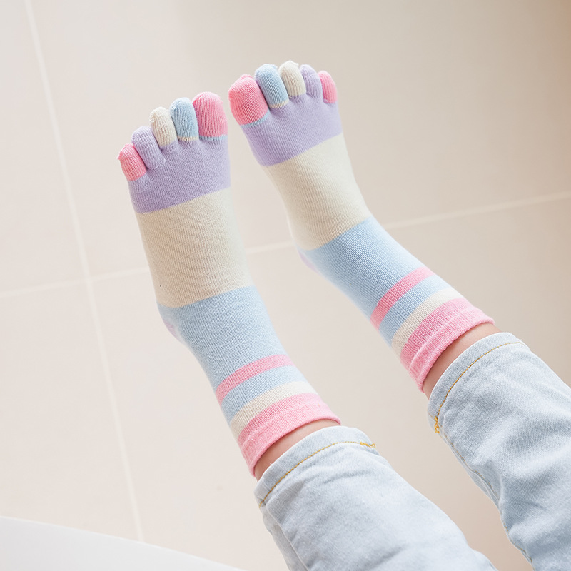 レインボーストライプ子供用五本指ソックス 無地綿素材 トレンドファッション分割指ソックス
