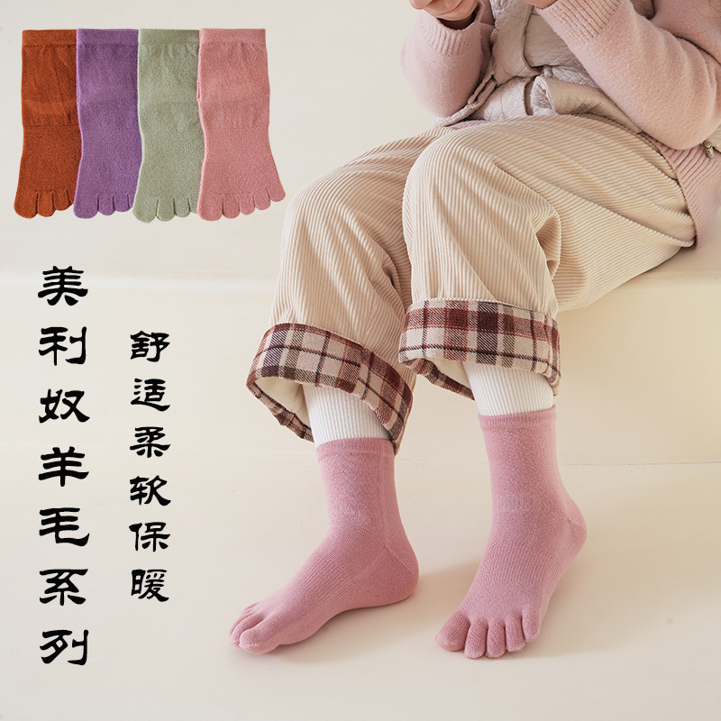 美利奴羊毛袜 儿童秋冬分指袜无骨无缝 中筒保暖舒适柔软改善脚趾