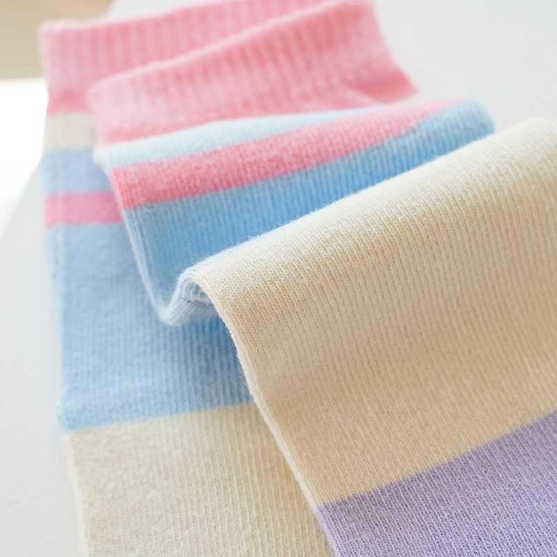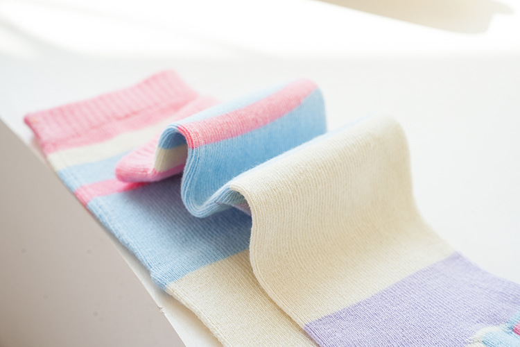 新商品秋冬子供五本指ソックス中筒カラーストライプ保温クロスボーダー
