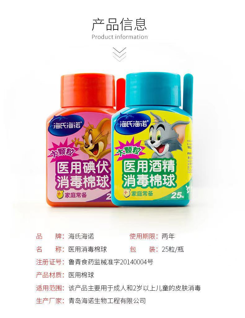 海氏海諾アルコール綿球医療用ヨウ素ボルトアルコール綿球皮膚傷口殺菌消毒液綿球家庭用