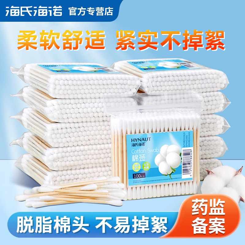 海氏海諾両頭綿棒、丸い両端綿棒、綿棒、化粧用、耳かき用両頭綿棒、本物の綿棒