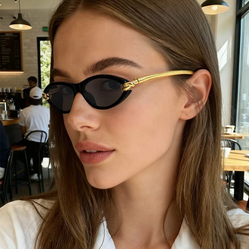 2025新品GMサングラスCOCAキャットアイレトロ楕円形サングラスレディース高級感個性的前衛顕顔小