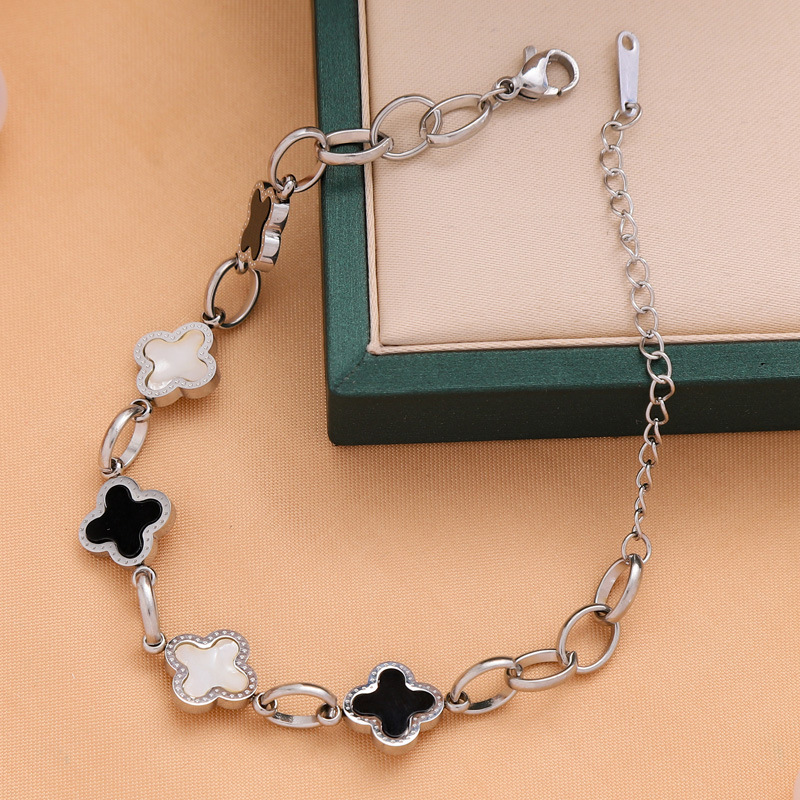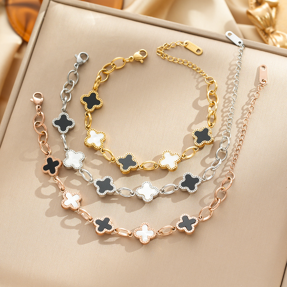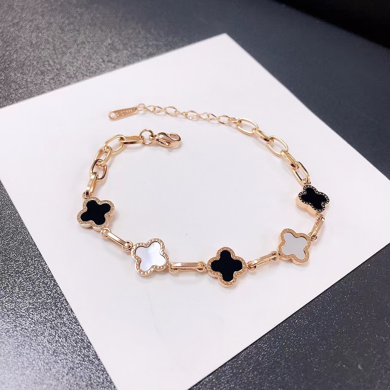 韓国版クロスボーダー気質白黒四葉草チタン鋼ブレスレット女性大衆デザイン高級感手飾りアクセサリー色落ちしない