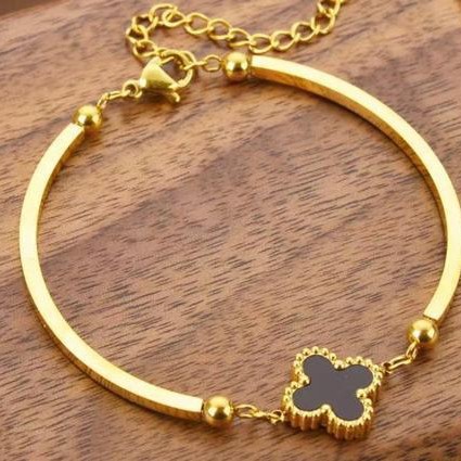 韓国のネットの赤い気質の白黒の四つ葉のクローバーのチタンのブレスレットの女性の森系の大衆の設計の手串の甘い少女の手は飾ります。