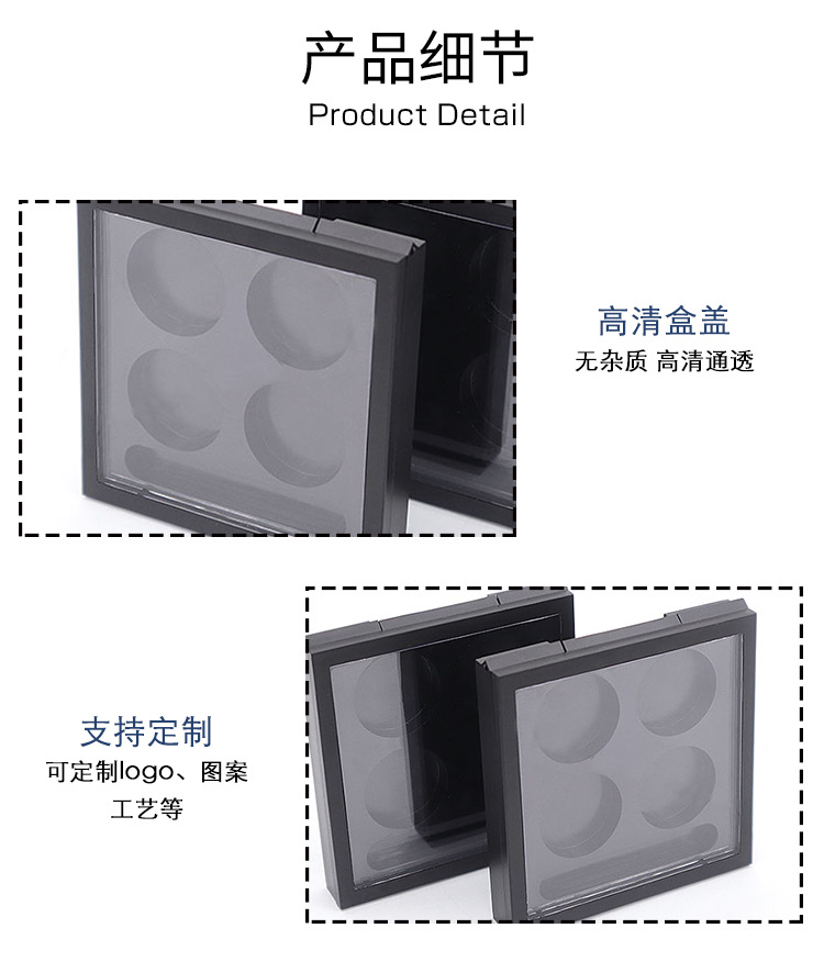 四角い4色のアイシャドーの箱は天の窓のブラシの溝の4格のアイシャドーのハイライトのチークの粉の箱の化粧品の包装材を持ちます。