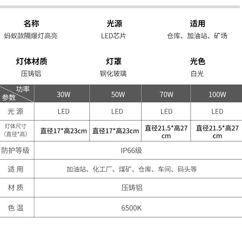 LED防爆地雷灯倉庫工場作業場ガソリンスタンドライト100w防爆型照明ランプ防爆省エネ