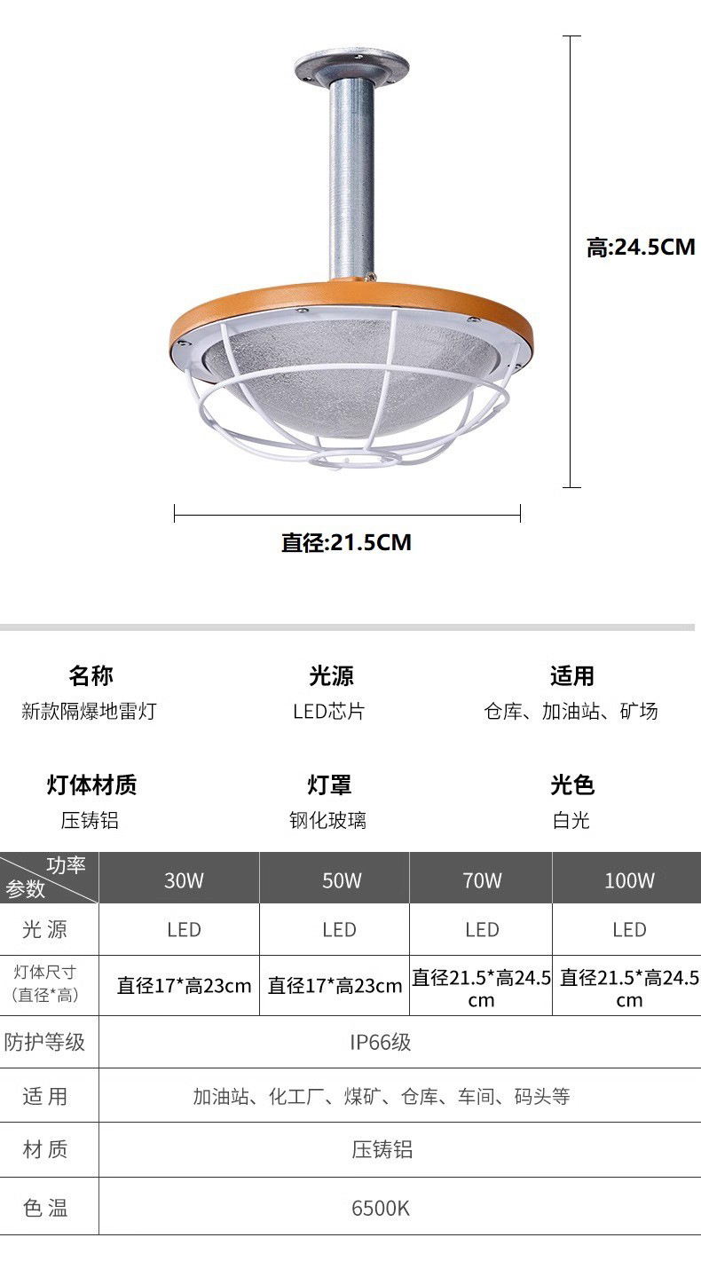 LED防爆手雷灯ガソリンスタンド照明灯倉庫工鉱灯耐高温円形LED防爆地雷灯