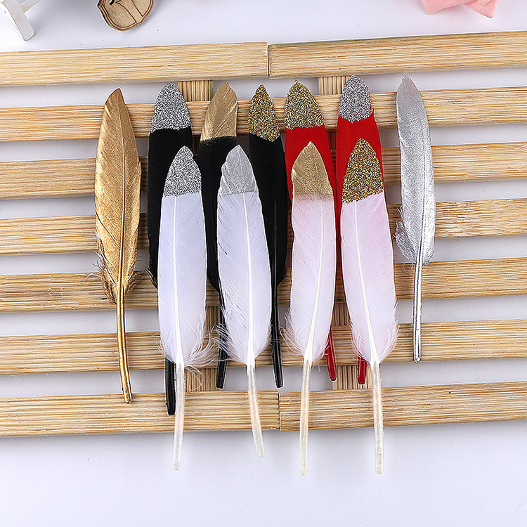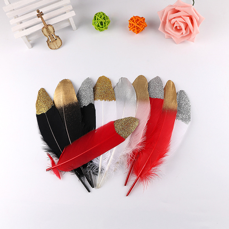 卸売り現物多色噴金小直刀羽10-15cmdiy手作りアクセサリーガチョウ毛