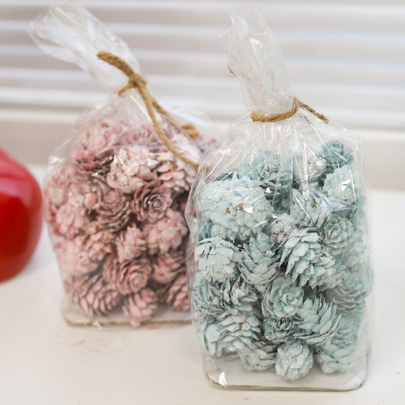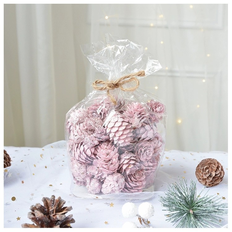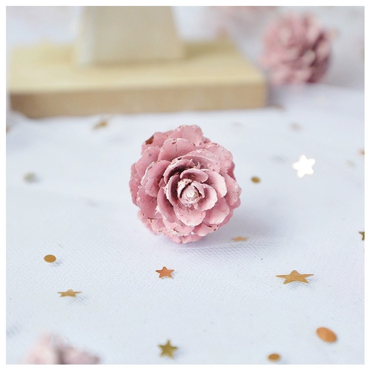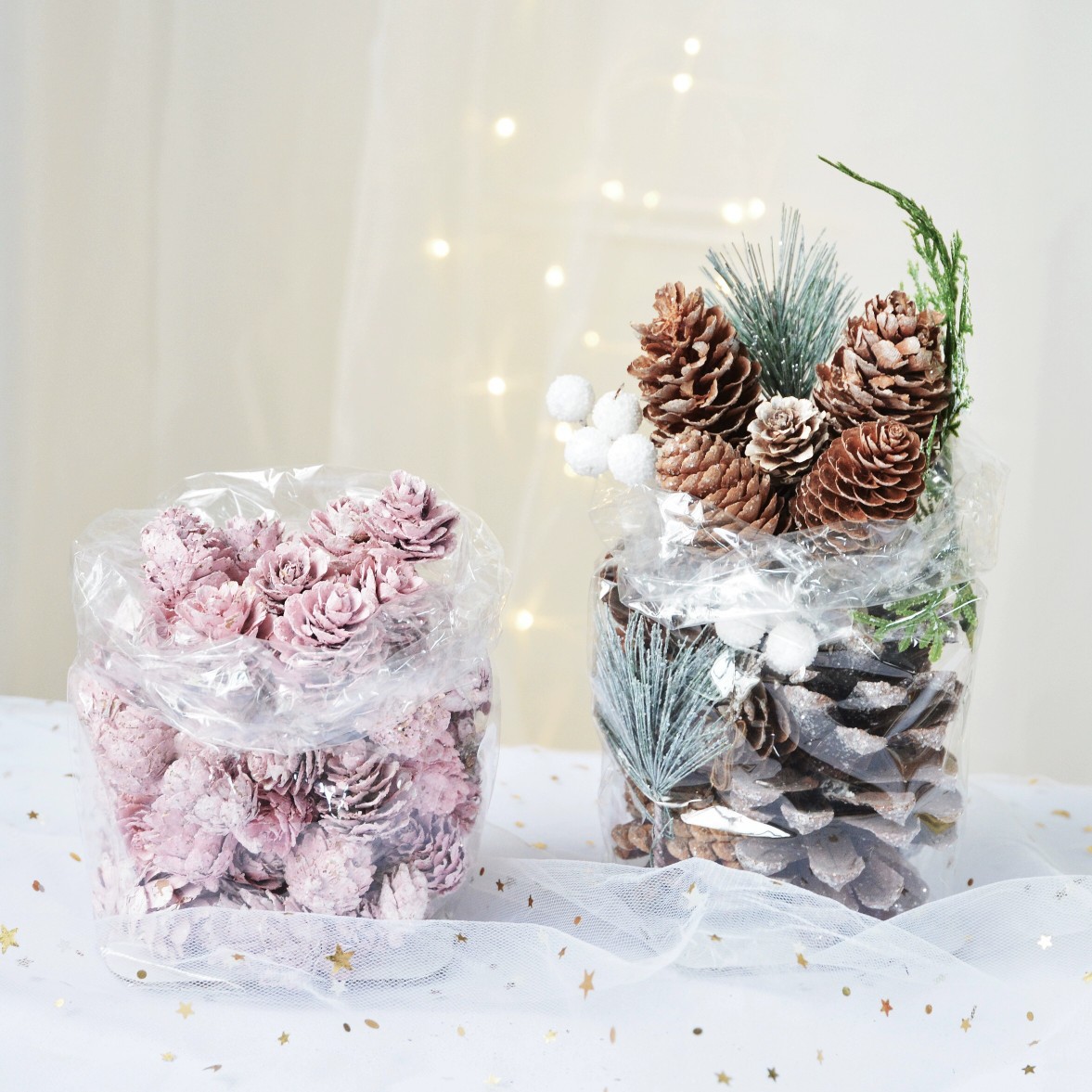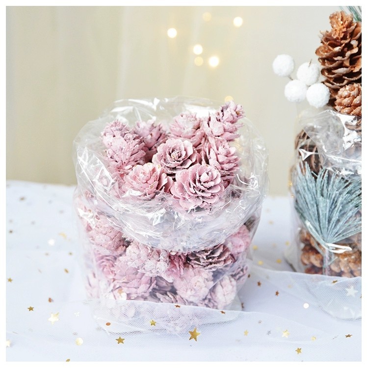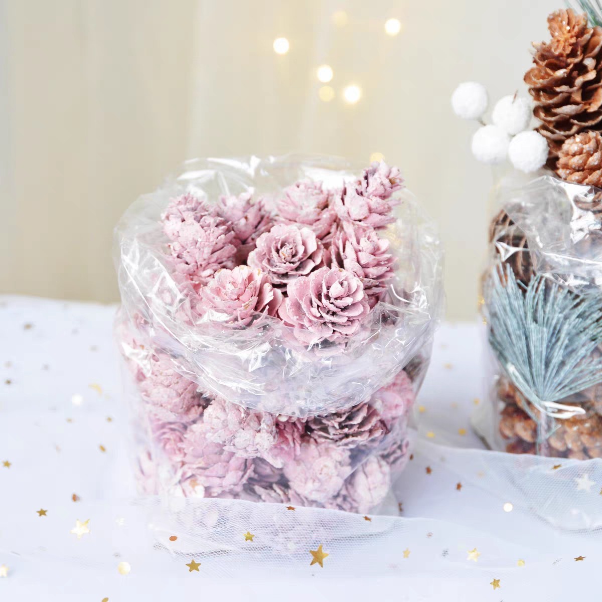 お勧めのswanlace韓国のピンクの松の実は白い花の芸の花の材料の銀と白の小さい景観のクリスマスツリーの装飾を染めます。