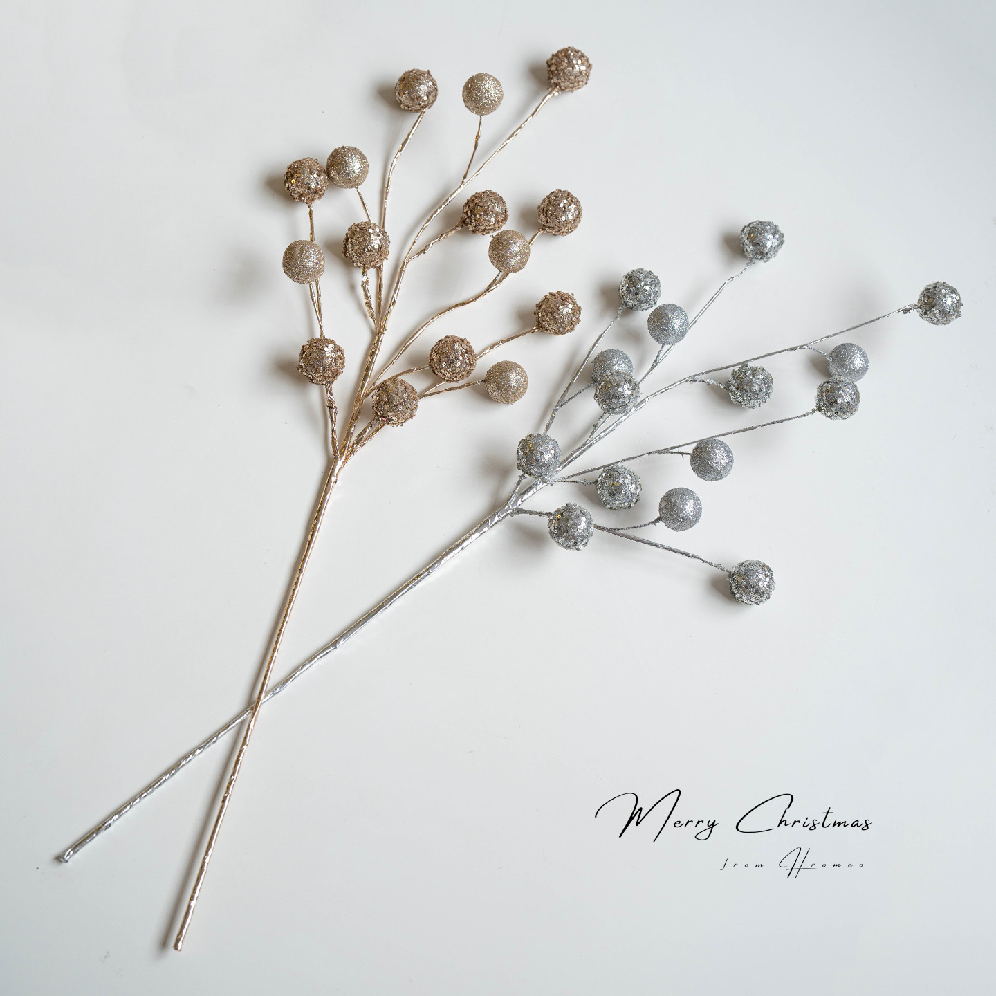 香槟色银色果子插枝圣诞节装饰品圣诞树装饰仿真泡沫亮片浆果装饰