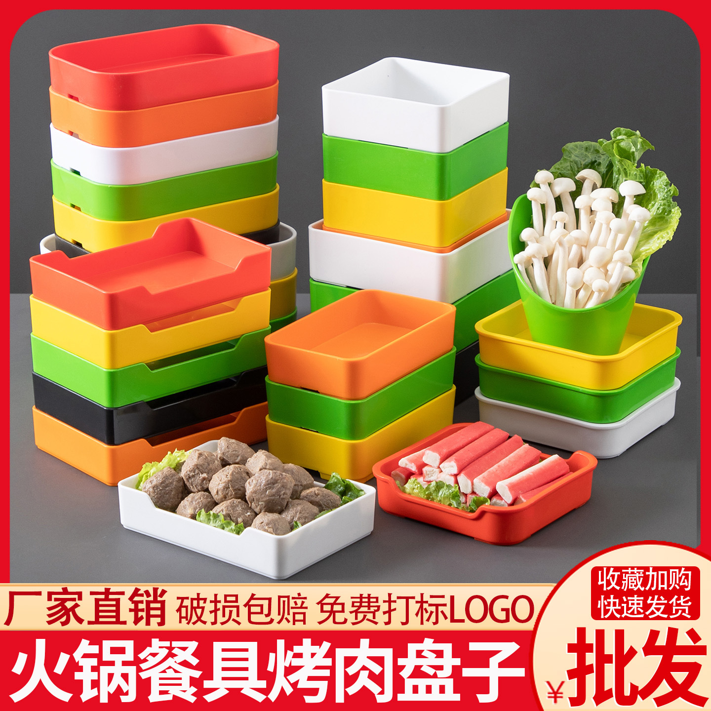 火鍋店用食器、業務用カラフルプラスチック製ビュッフェ用肉串小皿、メラミン製新中華風串串香専用プレート