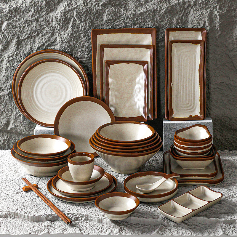 メラミン皿業務用レストランの鍋食器セットの料理皿は磁器の麺のようです。