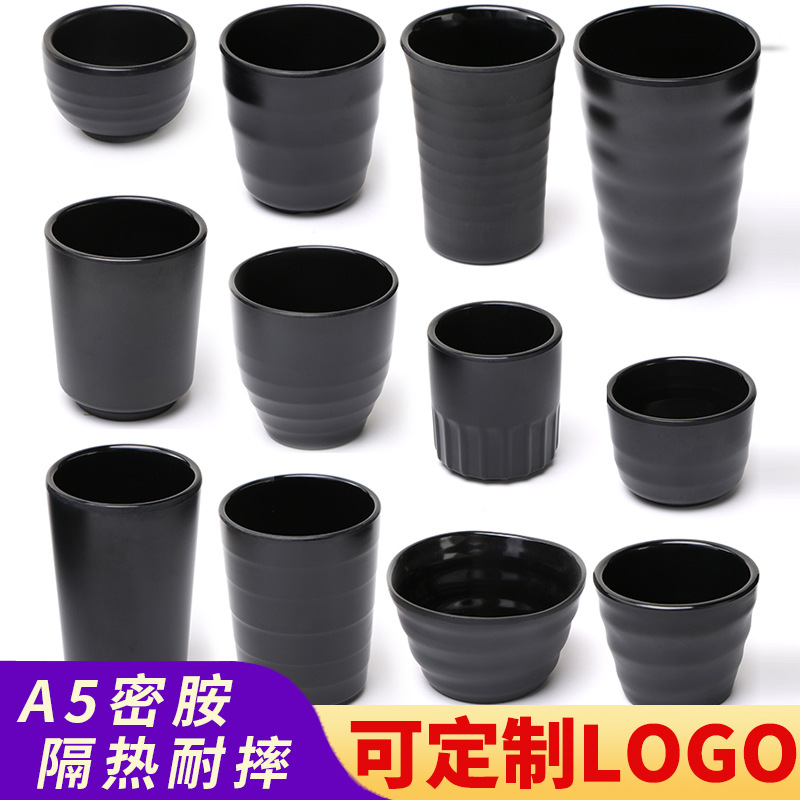 黒色のすりむいたメラミンの食器は磁器のプラスチックのレストランの飲み物の小さい杯をまねて投げますコップのコップの杯の杯の杯の口のコップに耐えます。