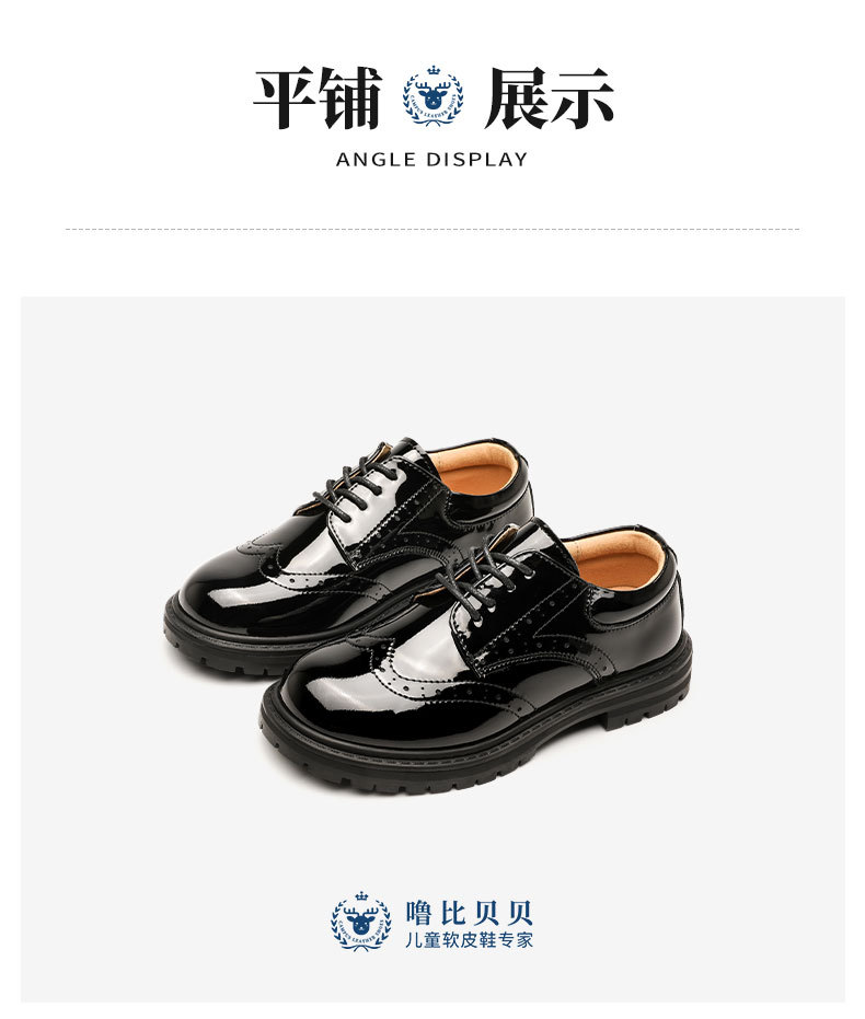 男の子用革靴 光沢仕上げ 韓国風 夏用 ソフトソール 通気性 カレッジスタイル 子供用 ブラック イギリス風 学生 キャットウォーク パフォーマンスシューズ