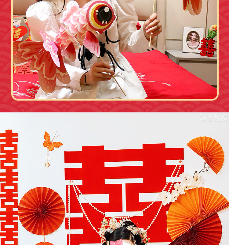結婚新婦の写真撮影道具DIY紅金魚喜字灯籠中国式結婚式大喜字婚房配置装飾