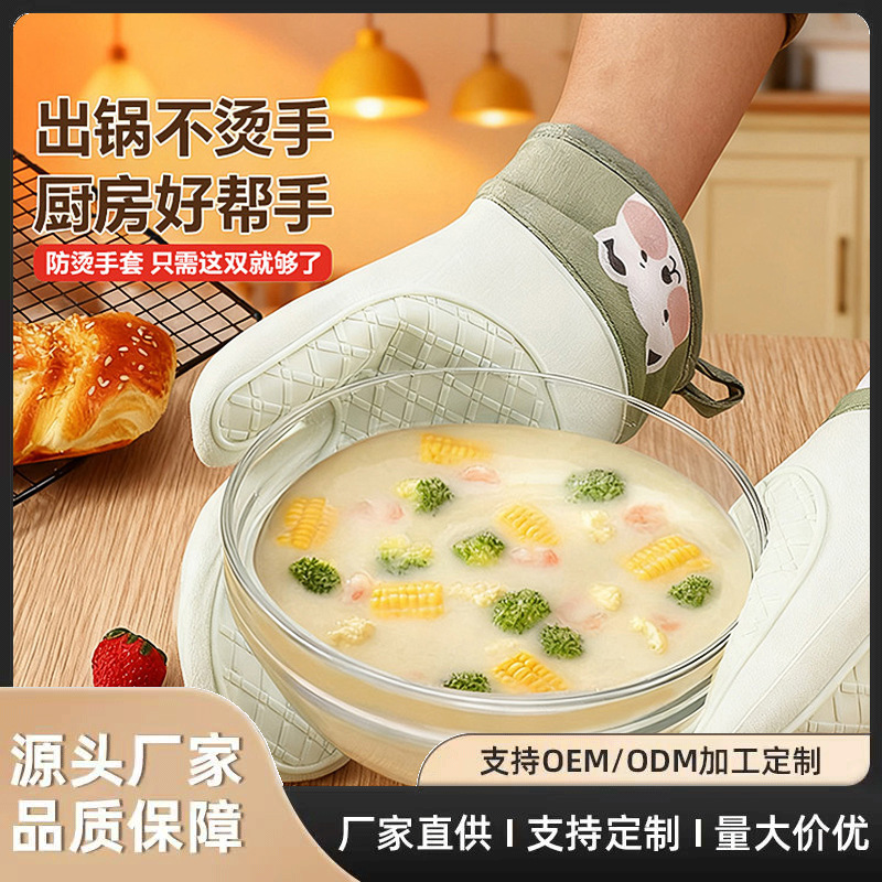防烫手套加厚硅胶厨房烤箱专用隔热套烘焙耐高温防滑微波炉手套子