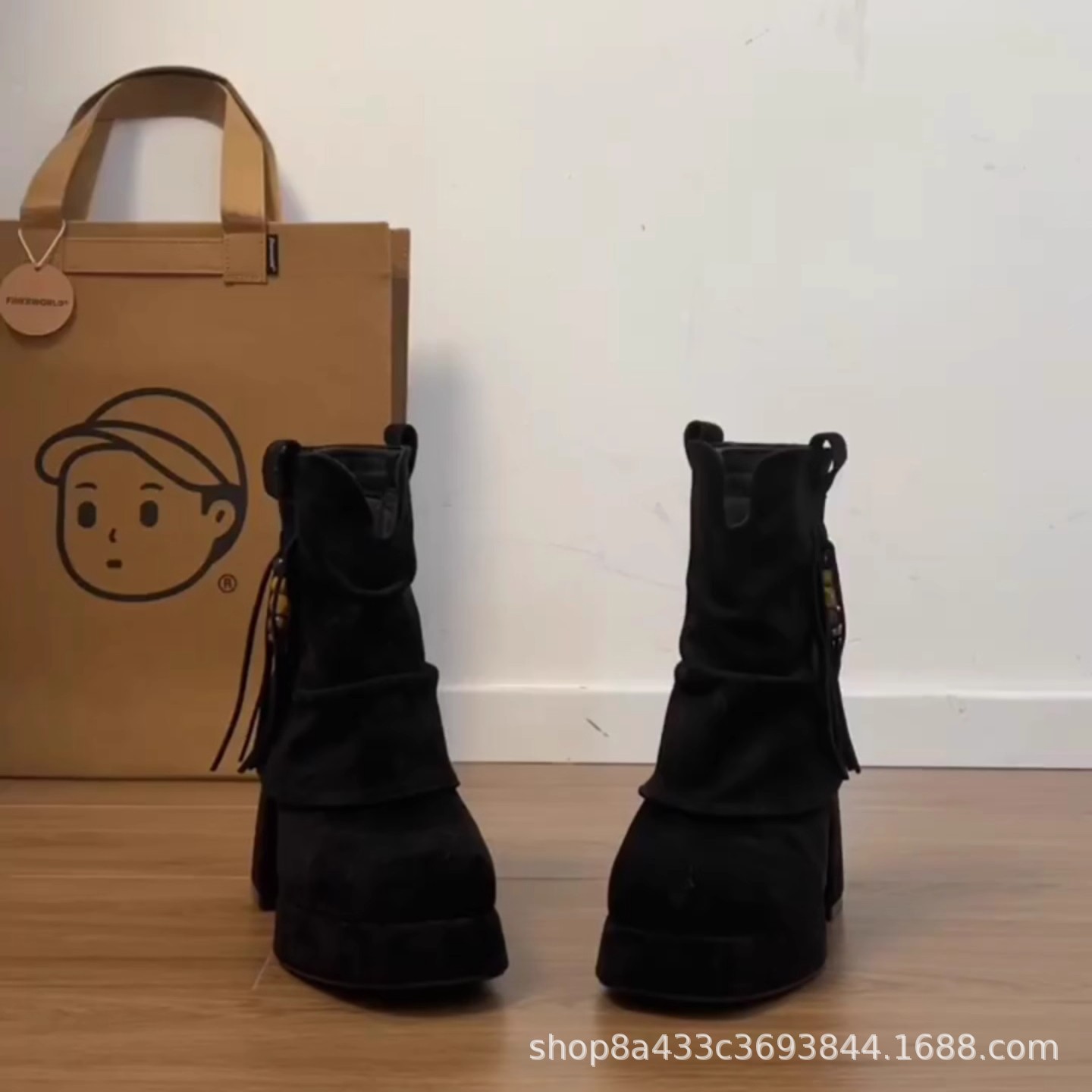 秋冬季方头粗跟时装靴女绒面厚底增高高跟复古风裤管靴(不含税)