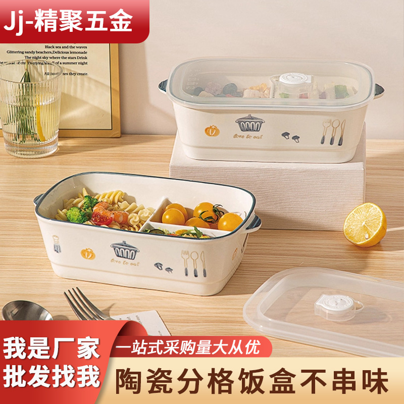 陶瓷饭盒微波炉上班族带盖密封便当盒分格餐盒保鲜碗保温饭盒直发