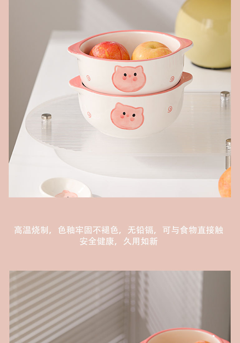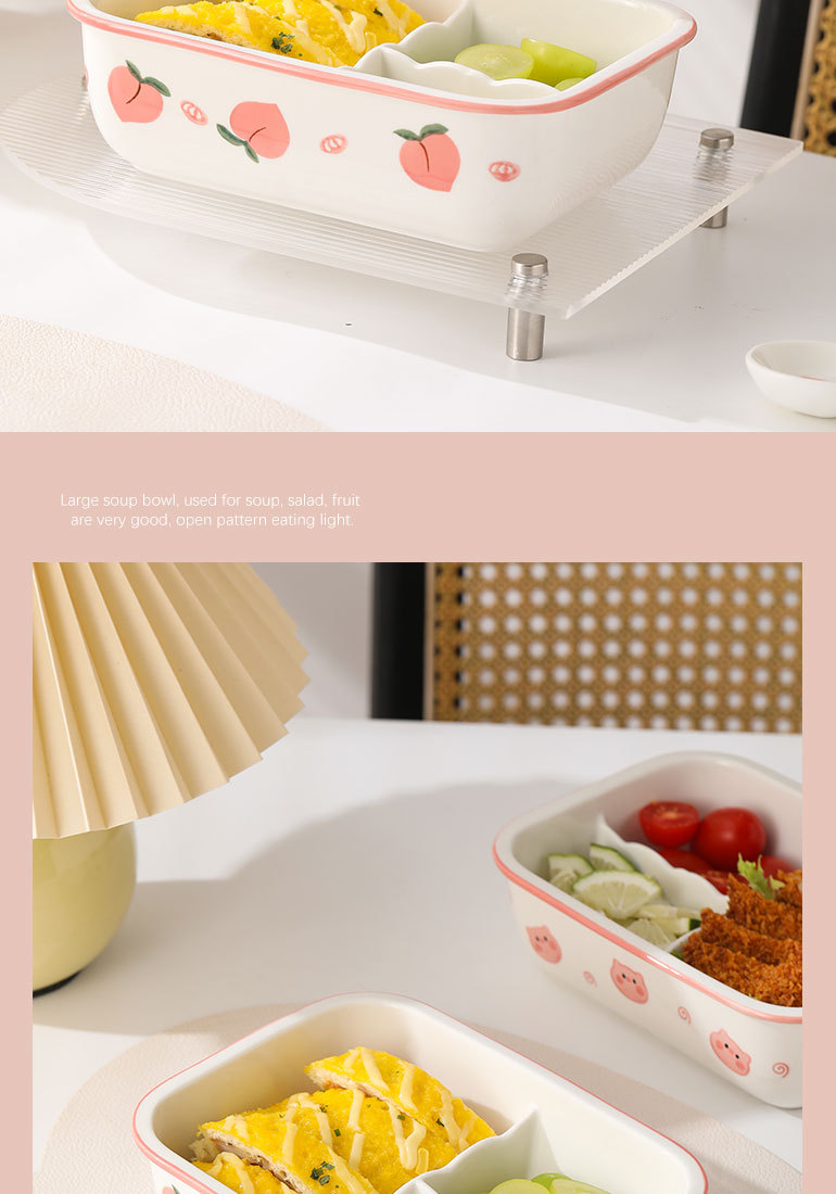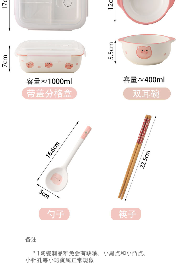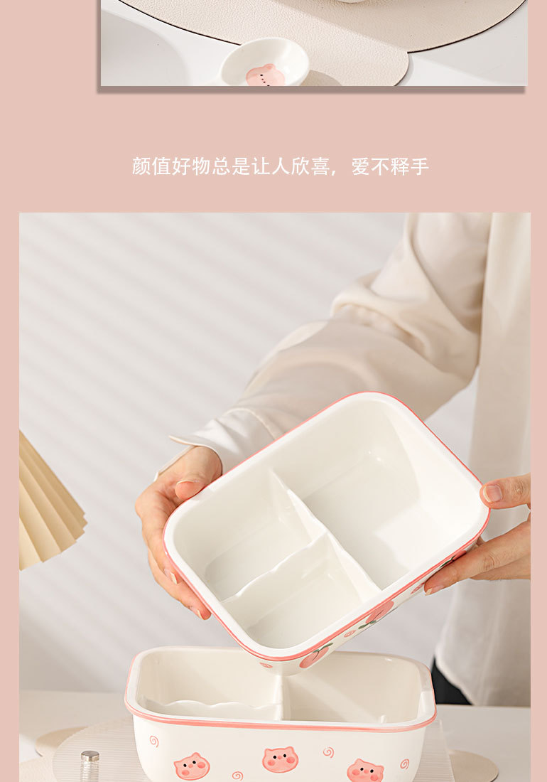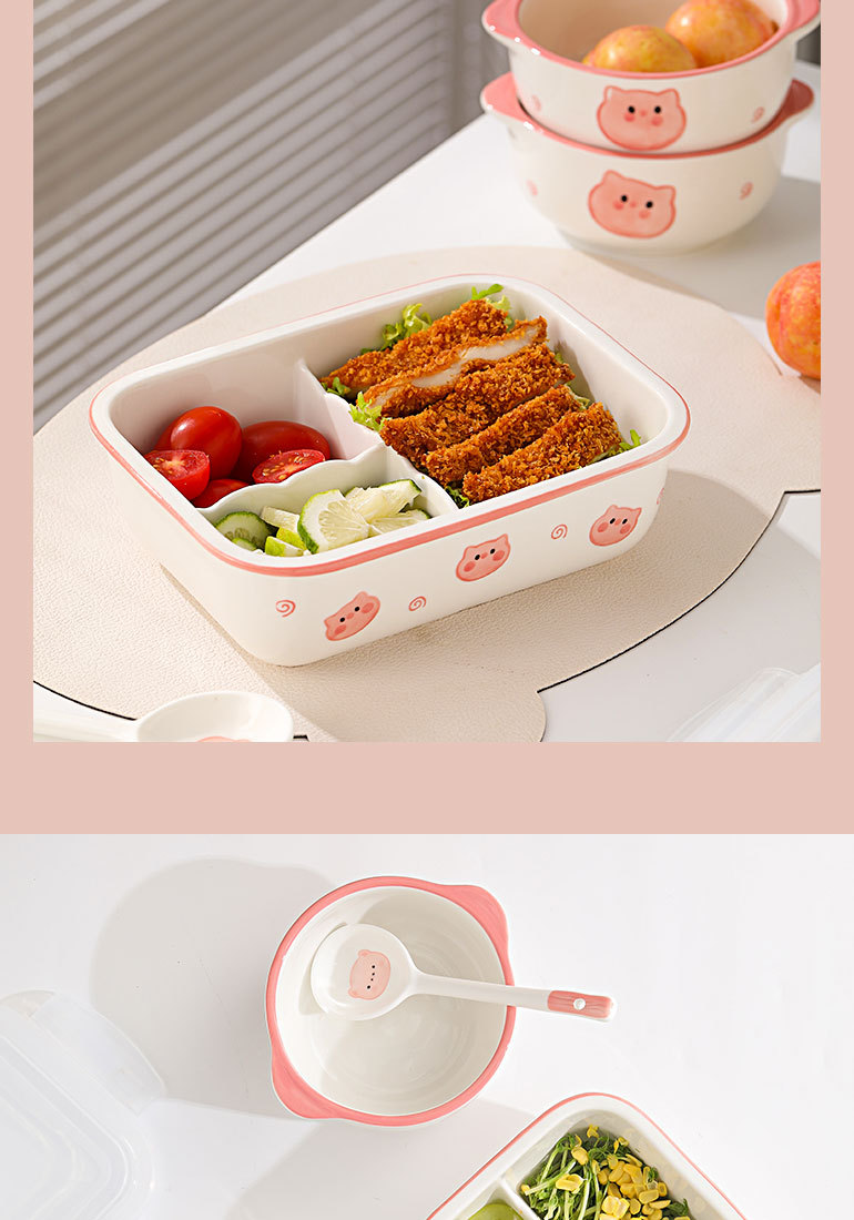 陶磁分格弁当箱電子レンジ加熱サラリーマン蓋付きかわいい豚豚学生新鮮碗円形弁当箱