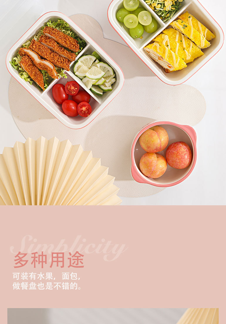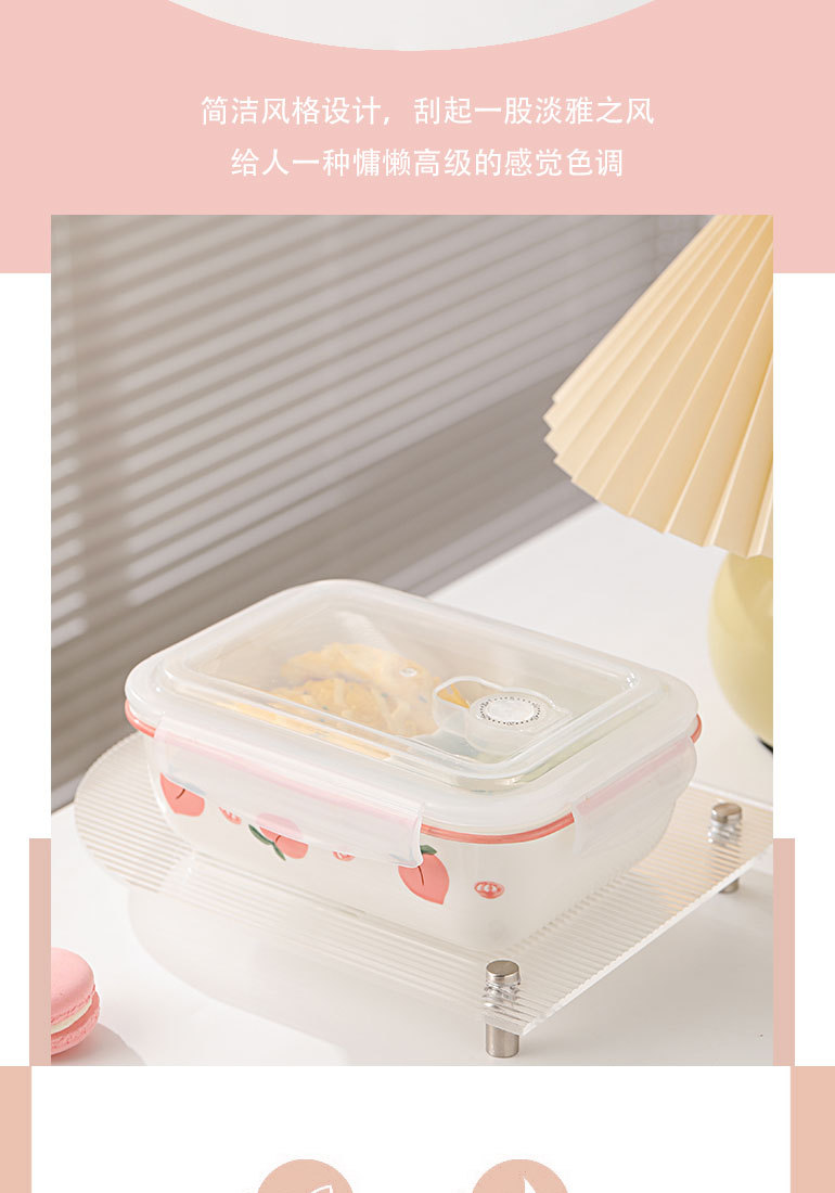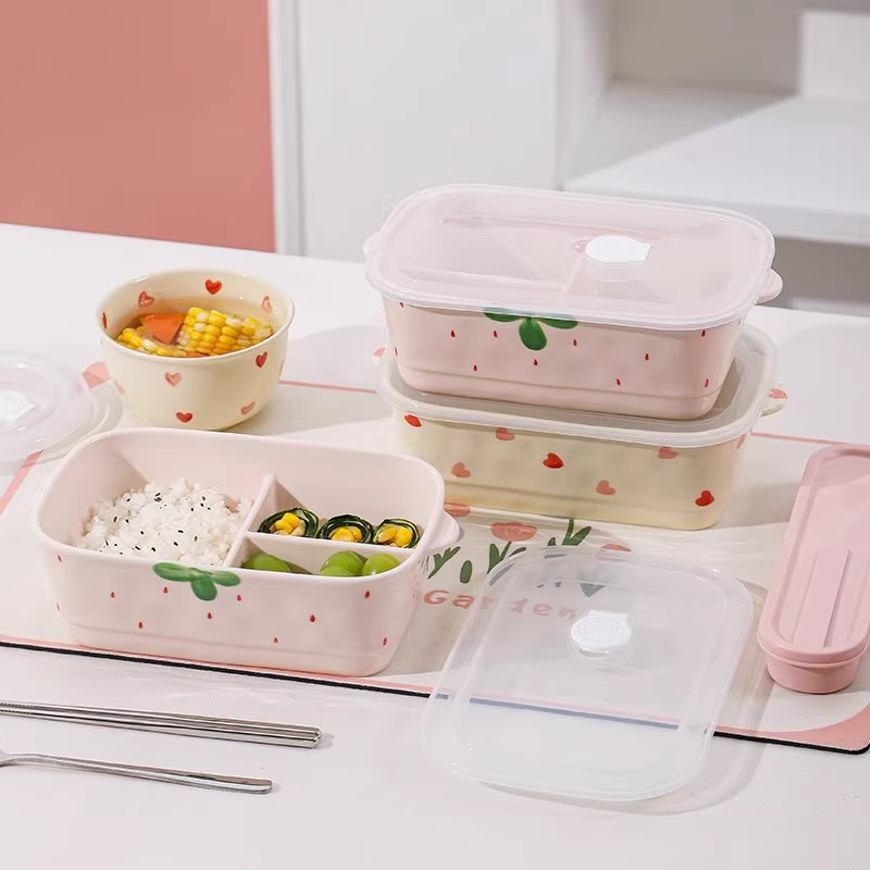 草莓陶瓷分隔饭盒上班族带饭餐盒学生专用三格便当盒微波炉加热