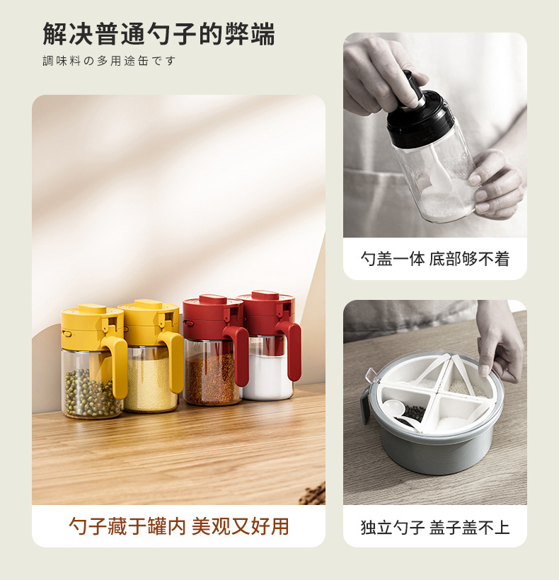 材料スプーン分離調味料ケース二合一デザインキッチン家庭用調味料缶塩瓶調味料収納ケース
